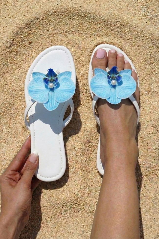 Плоски сандали с декоративно цвете
