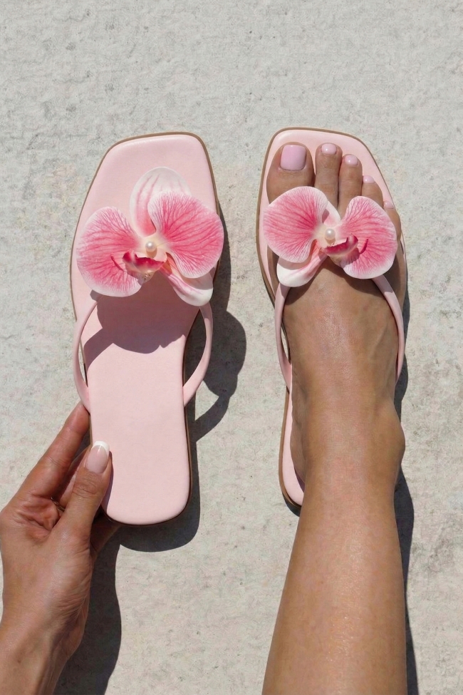 Sandale plate cu Floare Decorativă