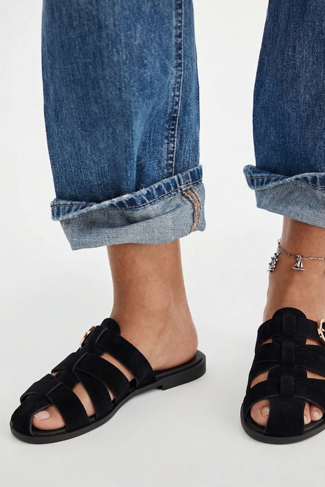 Sandale plate cu barete elaborate și cataramă