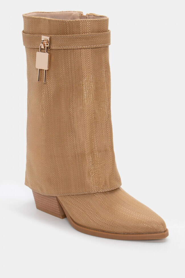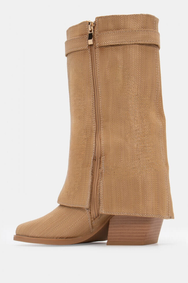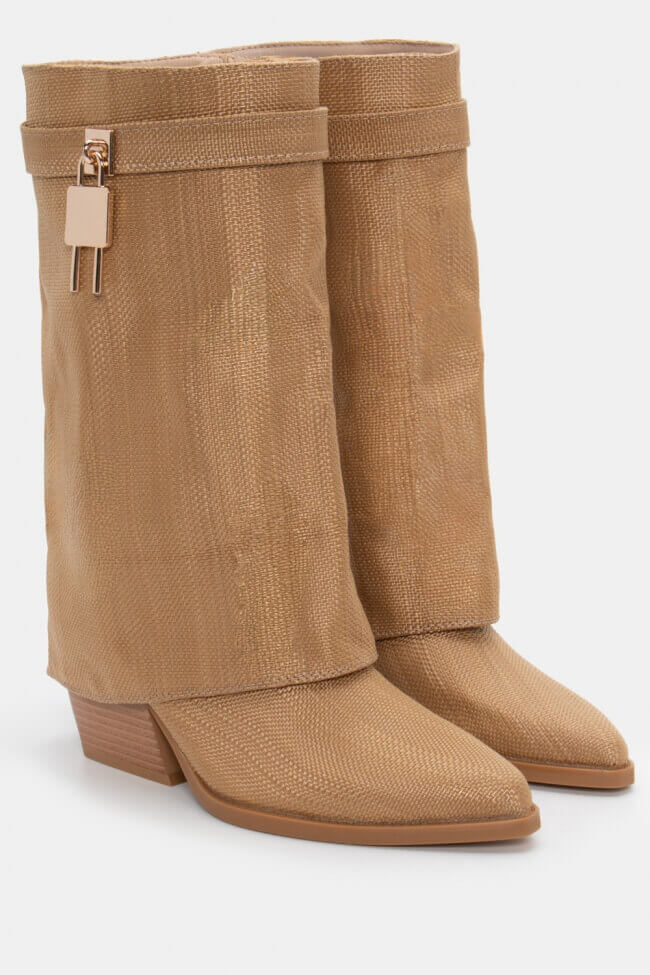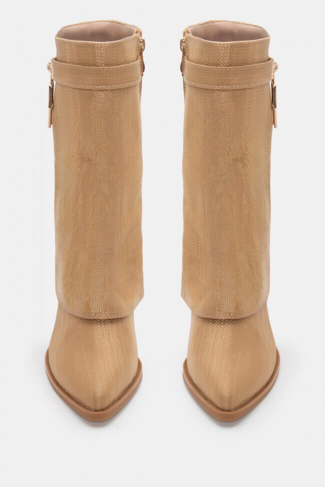 Pointed-Toe Boots with Folded Cuff Effect & Buckles