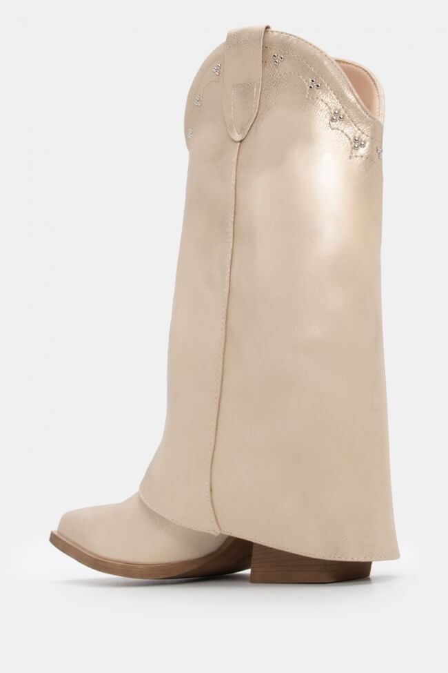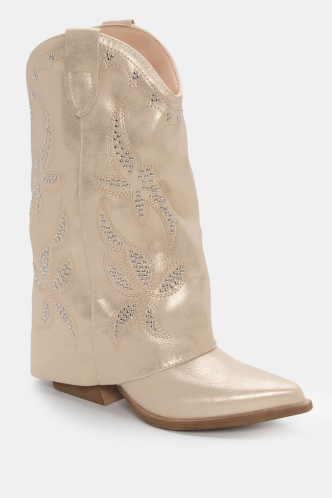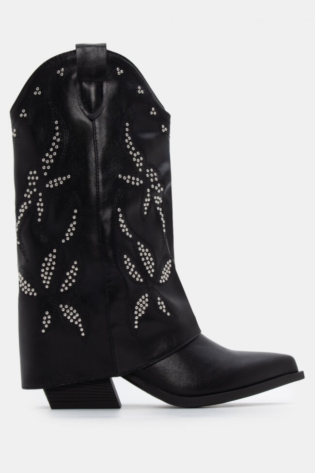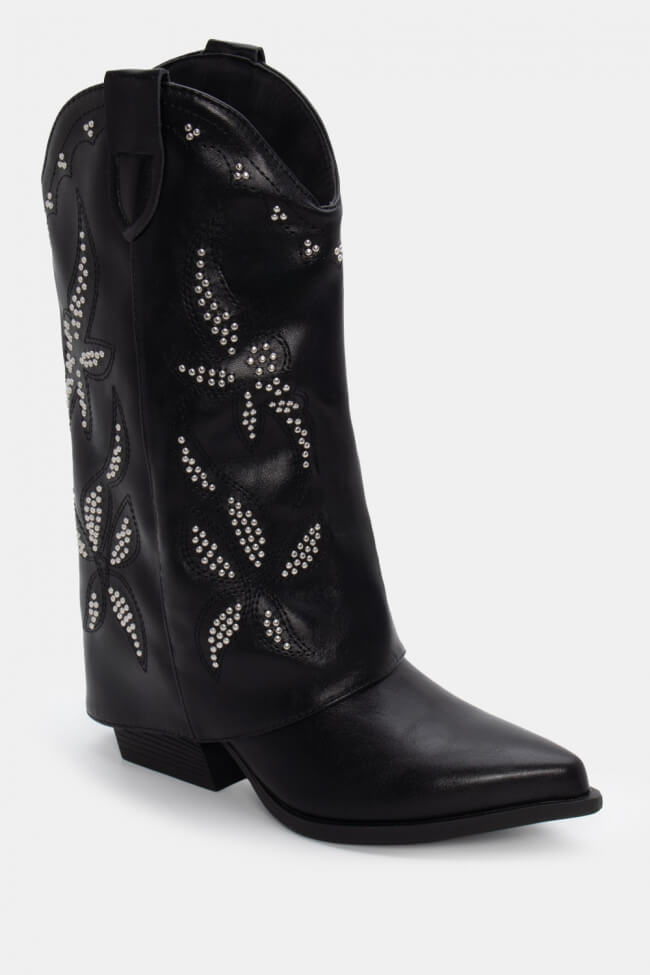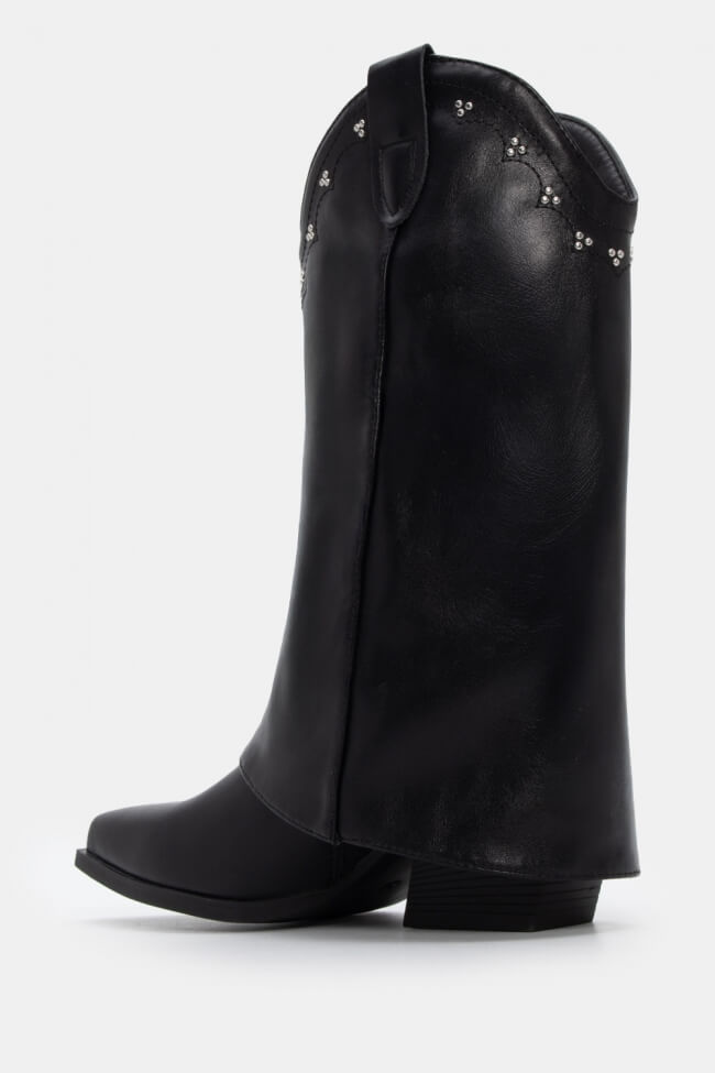 Cowboy Boots with Fold-Over Strap Effect & Studs