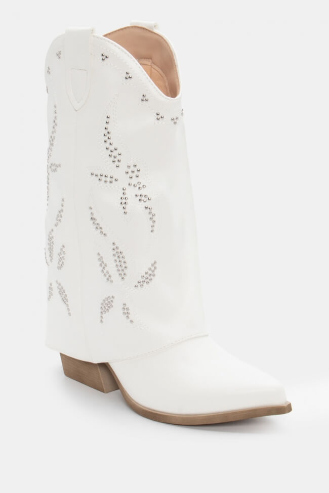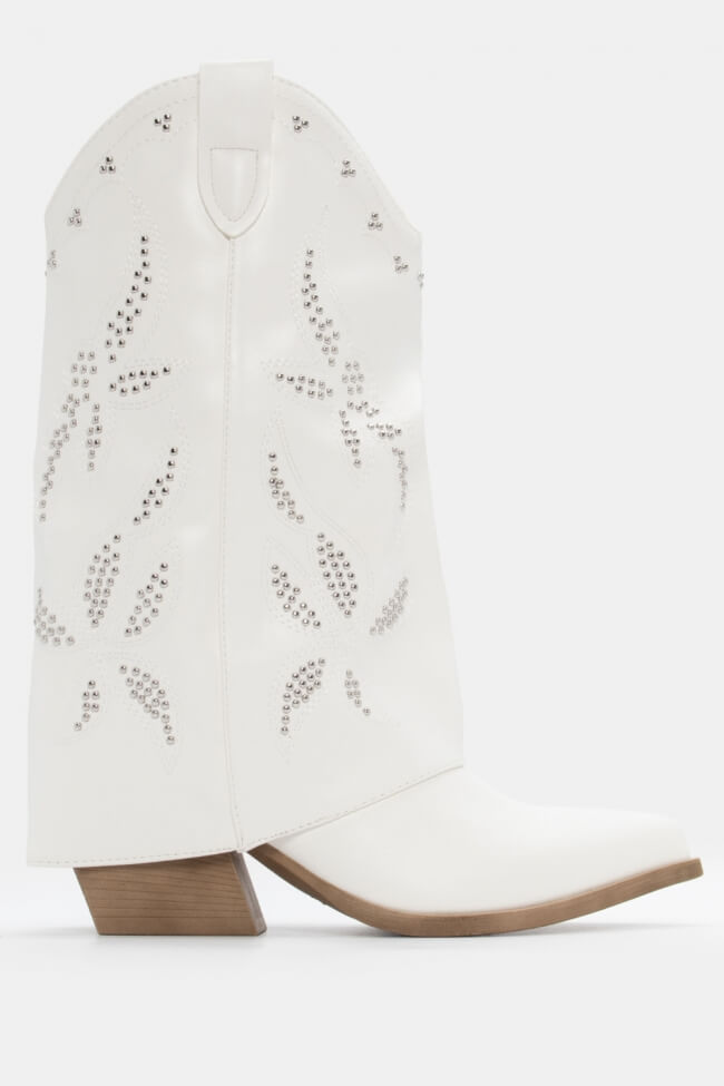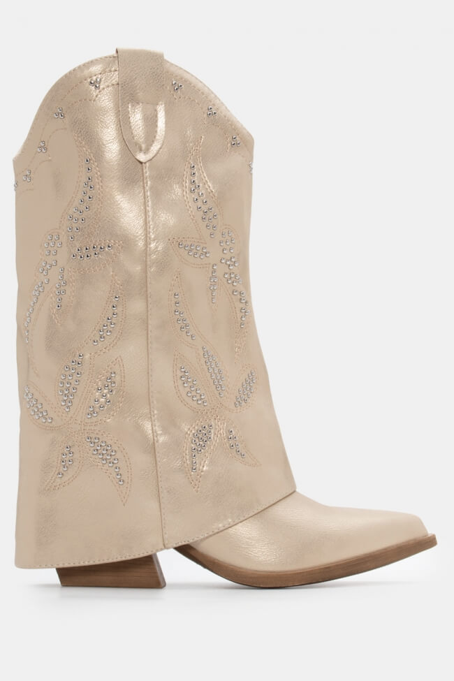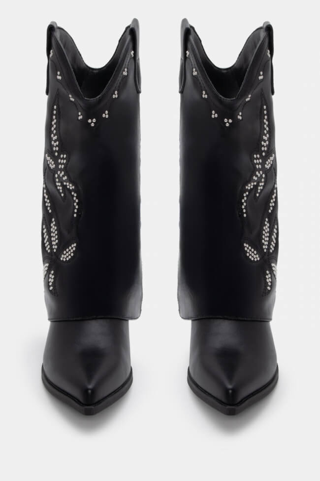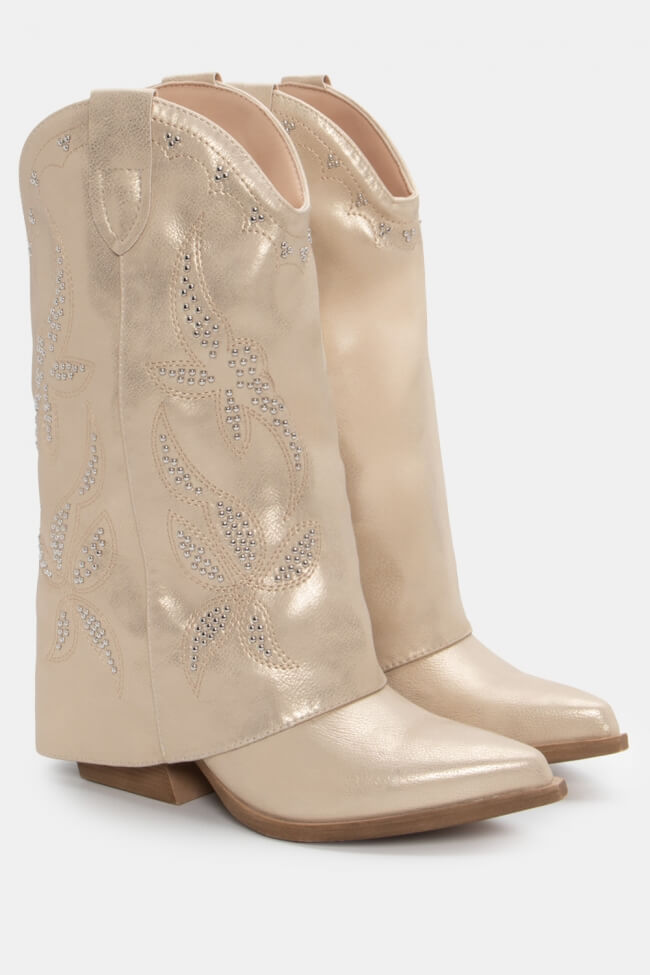 Cowboy Boots with Fold-Over Strap Effect & Studs