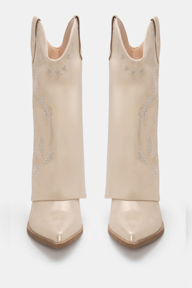 Cowboy Boots with Fold-Over Band Effect & Decorative Detail