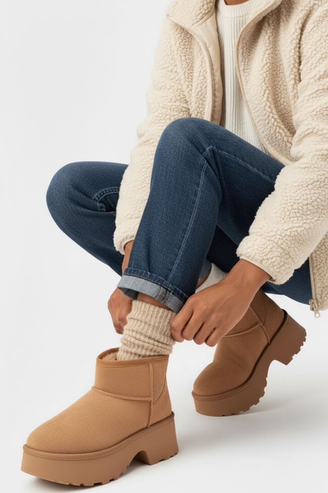 Μποτάκια Δίσολα με Εσωτερική Επένδυση Γούνας & Λάστιχο