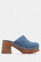 Сабо с широка каишка, преден шев, метални капси, затворен връх.