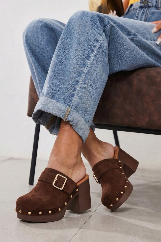 Clogs с Широка Лента и Метални Нитове