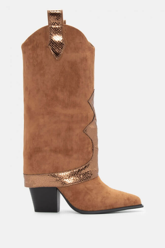 Boots with Foldable Cuff Effect with Snake Print Detail