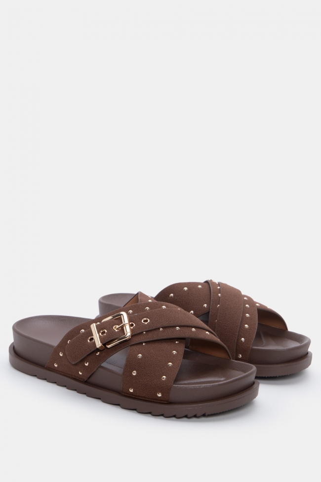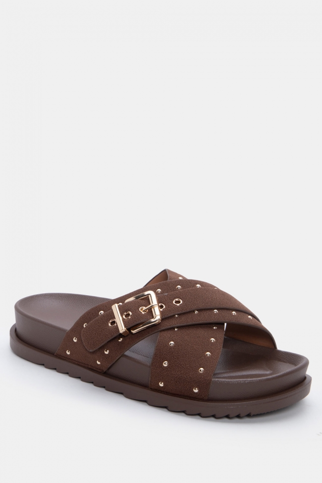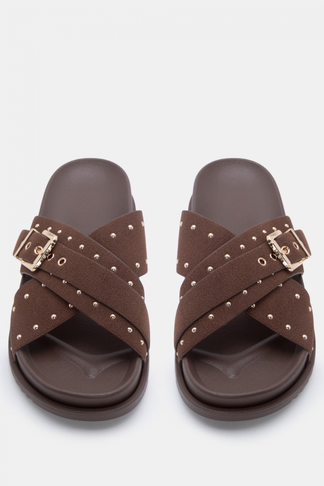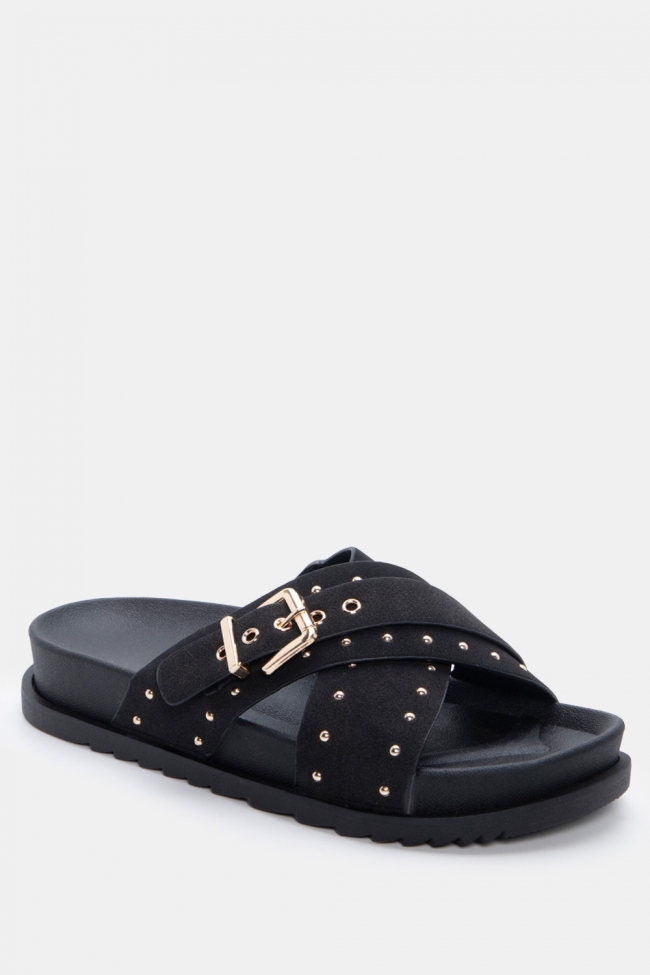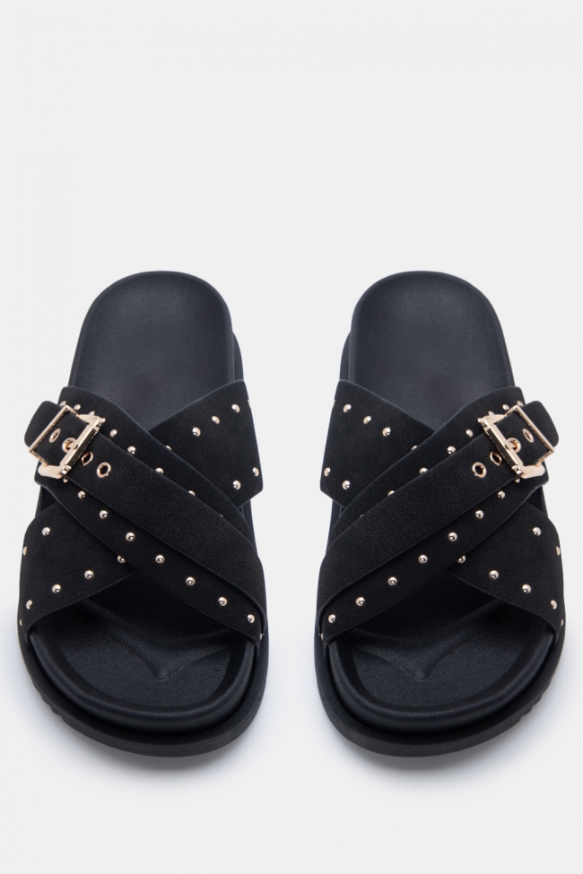 Sandali flatform con doppie fibbie e borchie