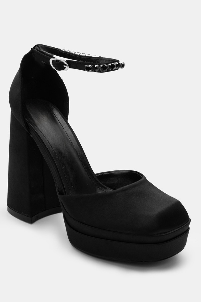 Γόβες Σατέν με Μπαρέτα από Διακοσμητικές Πέτρες