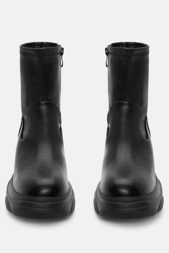 - Αν αγαπάς τα minimal κομμάτια, μπορείς να επιλέξεις πιο κλασικά σχέδια όπως biker boots σε μονόχρωμη παλέτα, που ταιριάζουν με τα πάντα.