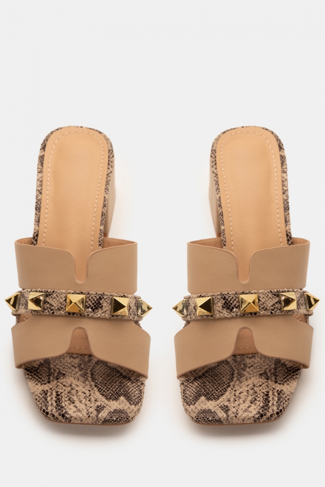 Mules with Snake Print Detail & Studs