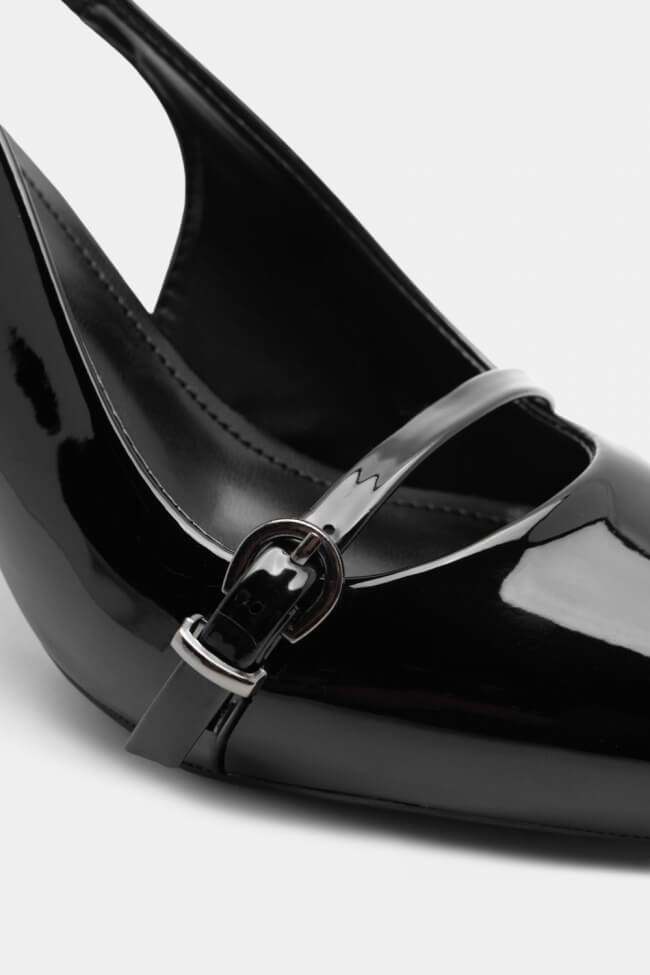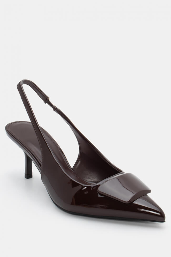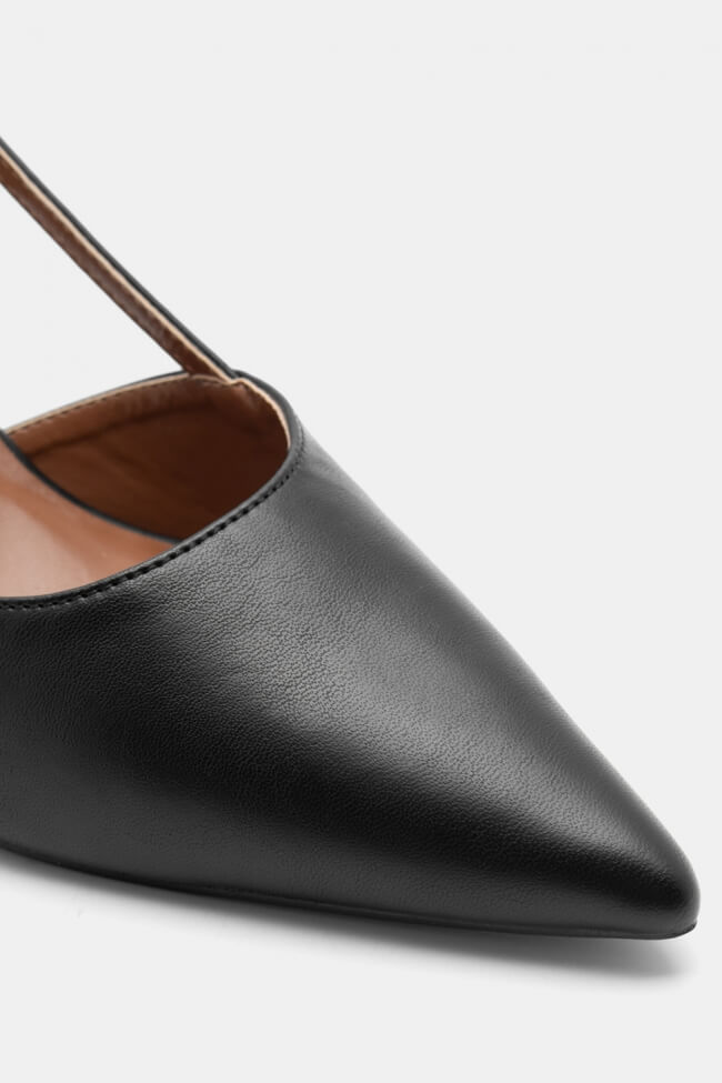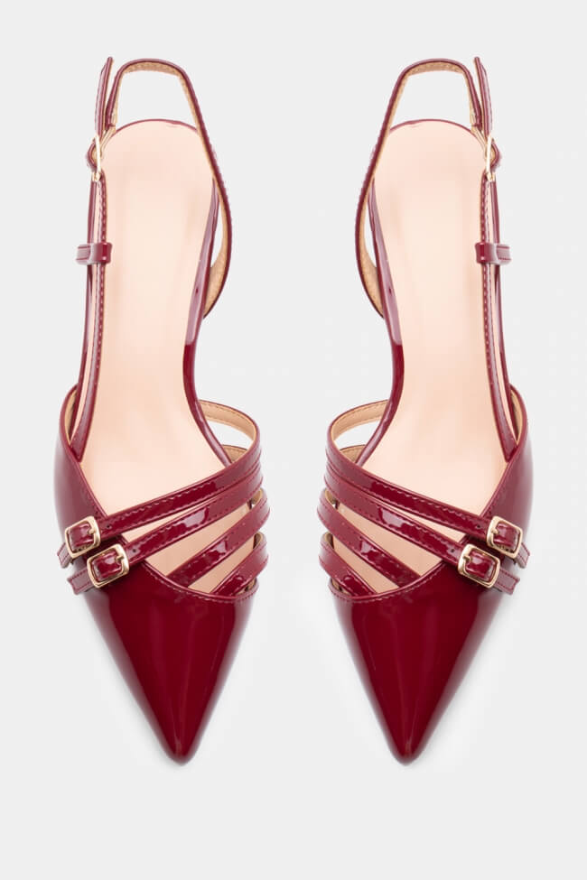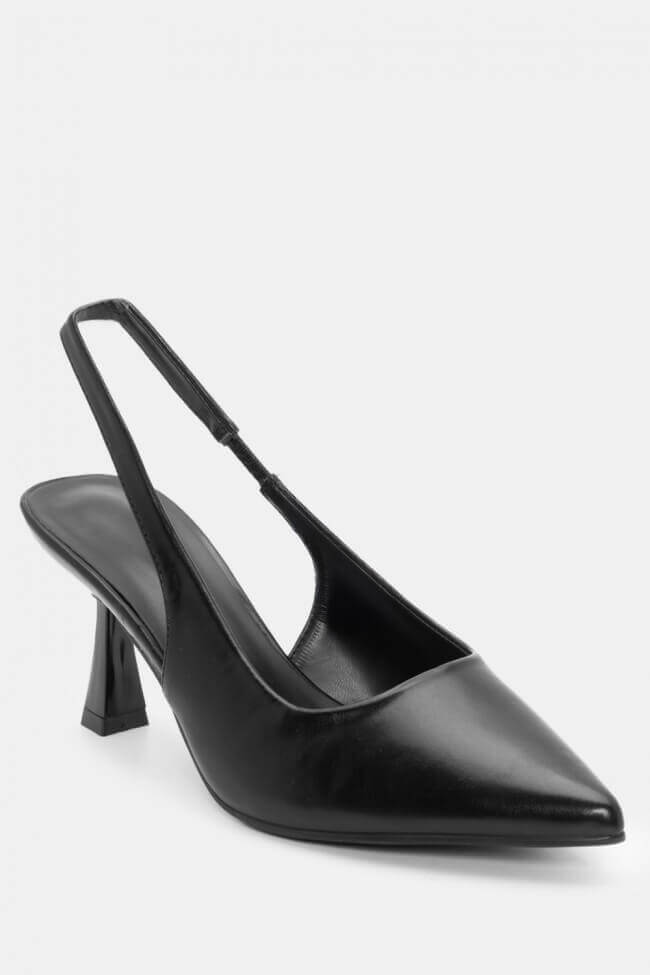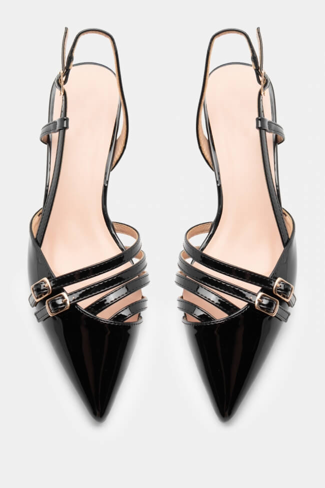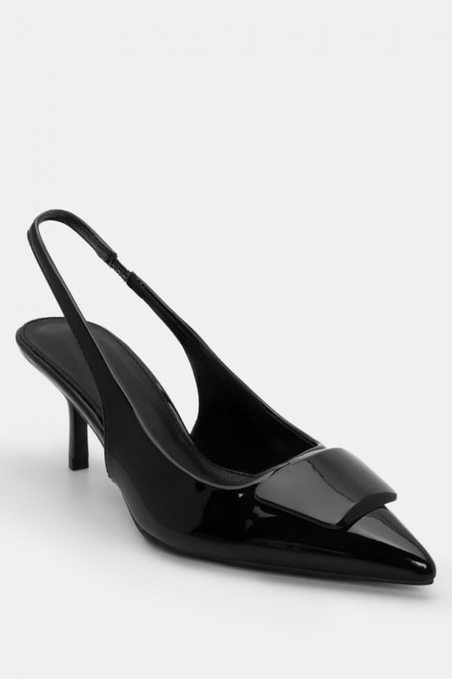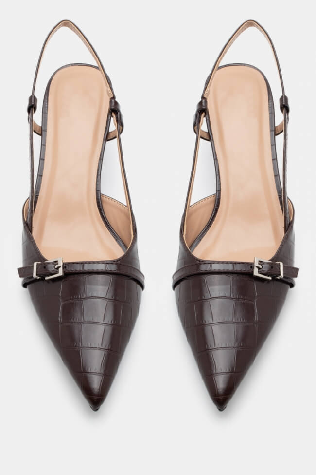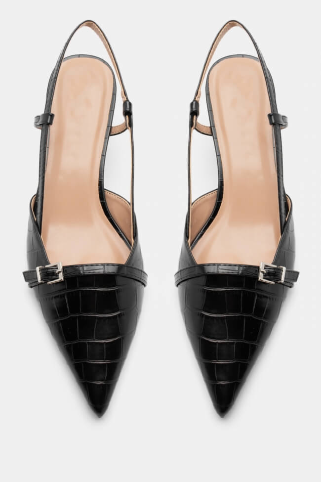 Pentru un look minimalist, poartă pantofi slingback cu vârf ascuțit cu pantaloni croiți și o cămașă sau blazer. Dacă alegi pantofi cu ornamente, combină-i cu o fustă midi și bijuterii minimaliste pentru un rezultat sofisticat.