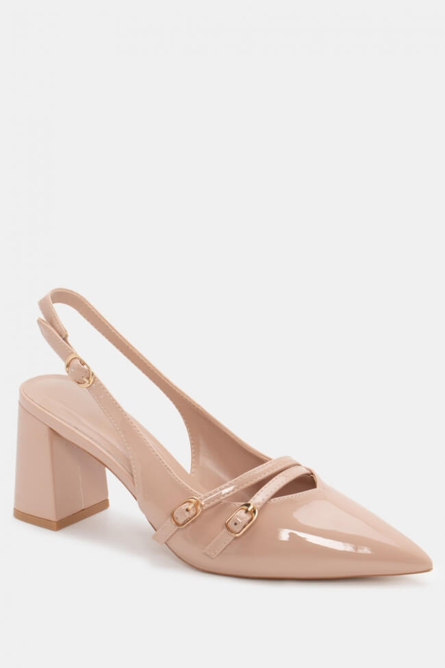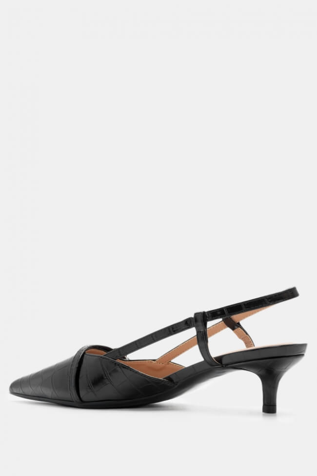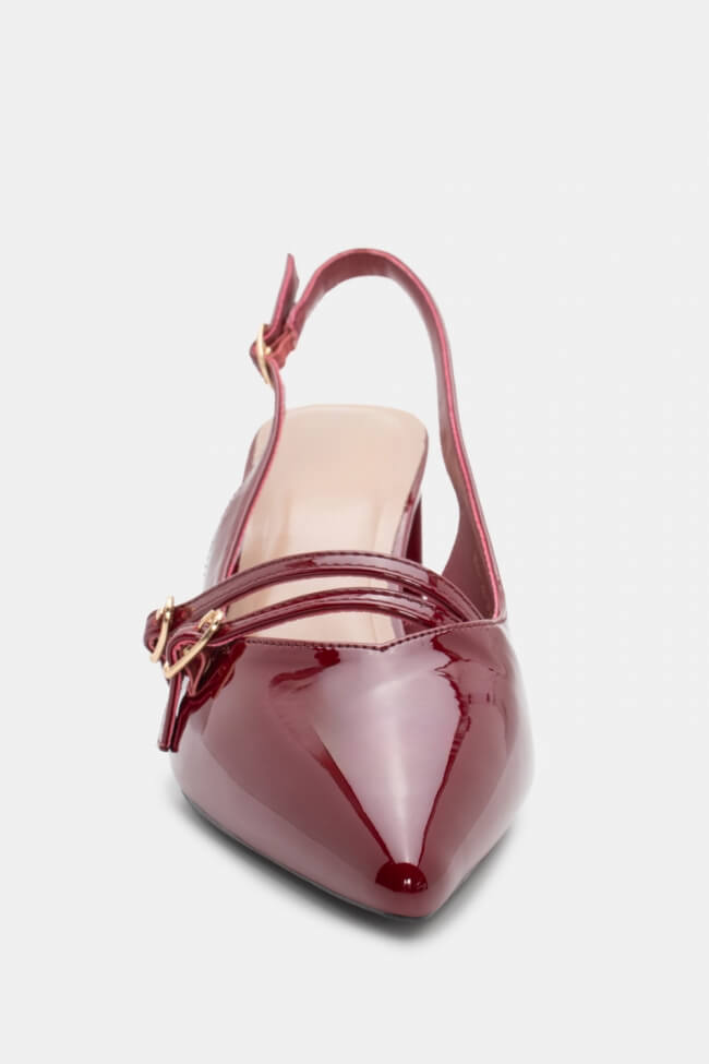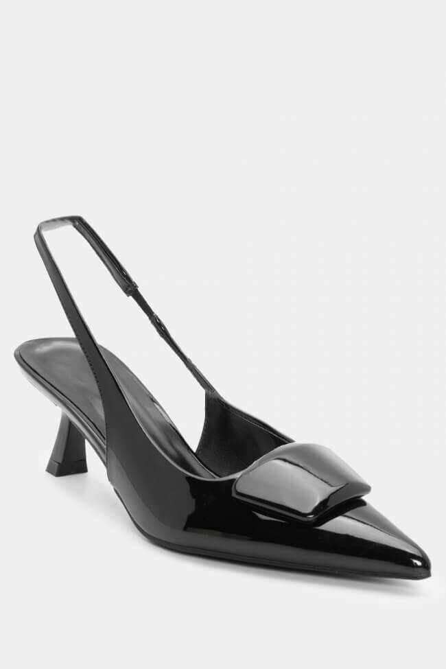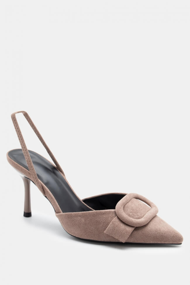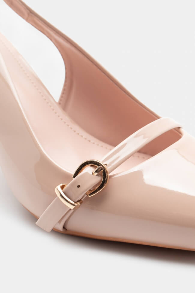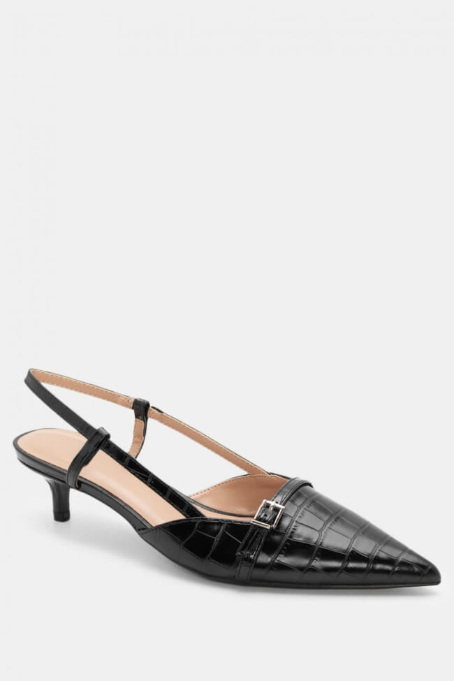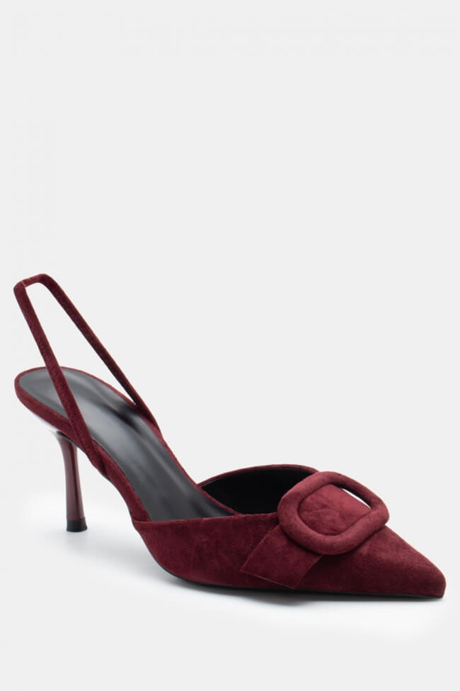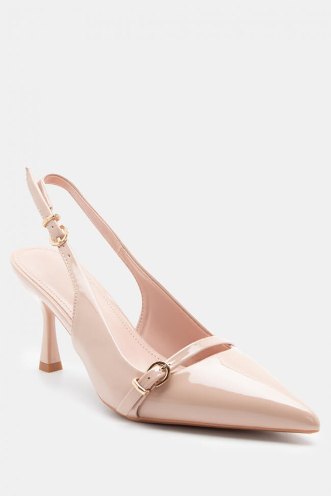 Pentru un look minimalist, poartă pantofi slingback cu vârf ascuțit cu pantaloni croiți și o cămașă sau blazer. Dacă alegi pantofi cu ornamente, combină-i cu o fustă midi și bijuterii minimaliste pentru un rezultat sofisticat.