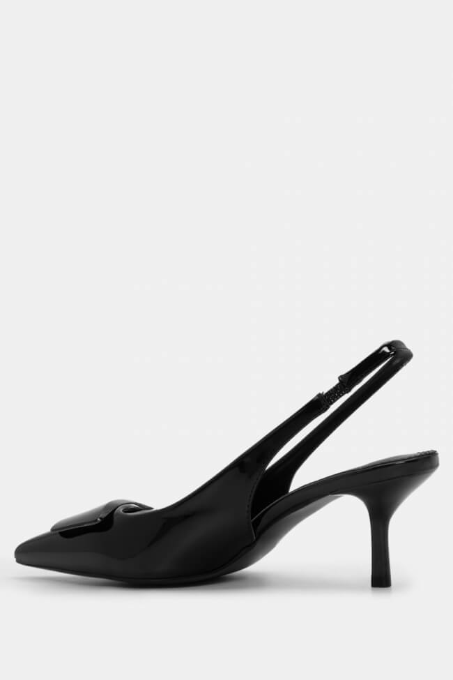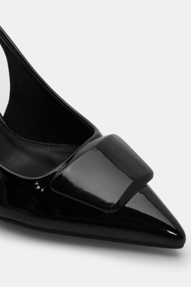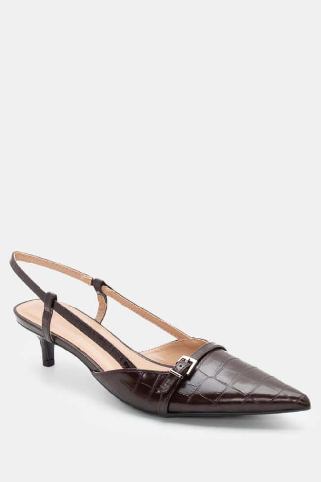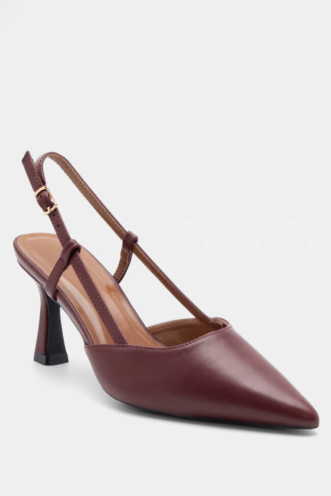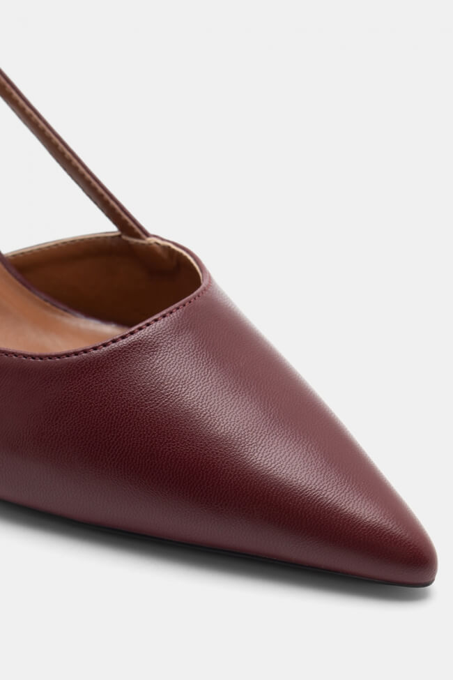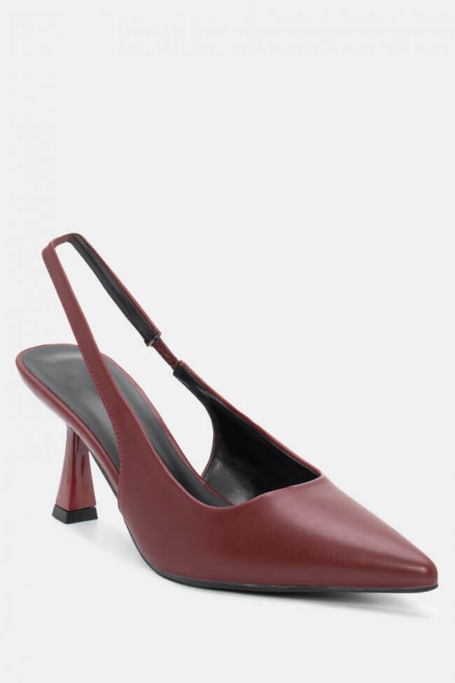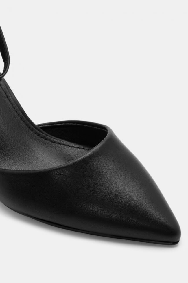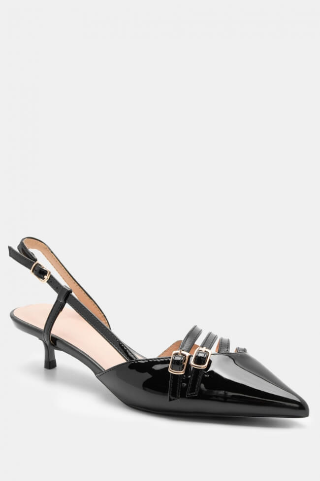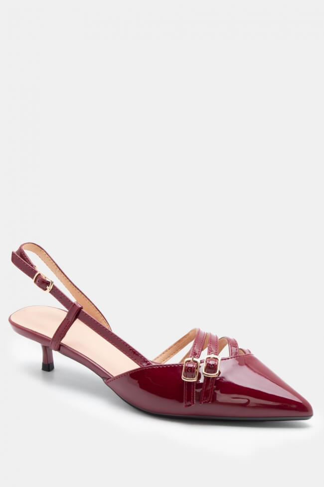 Pentru un look minimalist, poartă pantofi slingback cu vârf ascuțit cu pantaloni croiți și o cămașă sau blazer. Dacă alegi pantofi cu ornamente, combină-i cu o fustă midi și bijuterii minimaliste pentru un rezultat sofisticat.