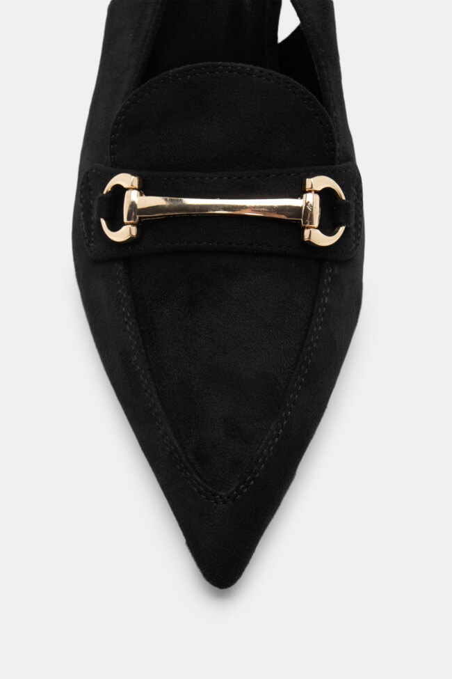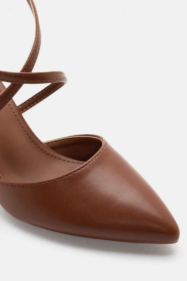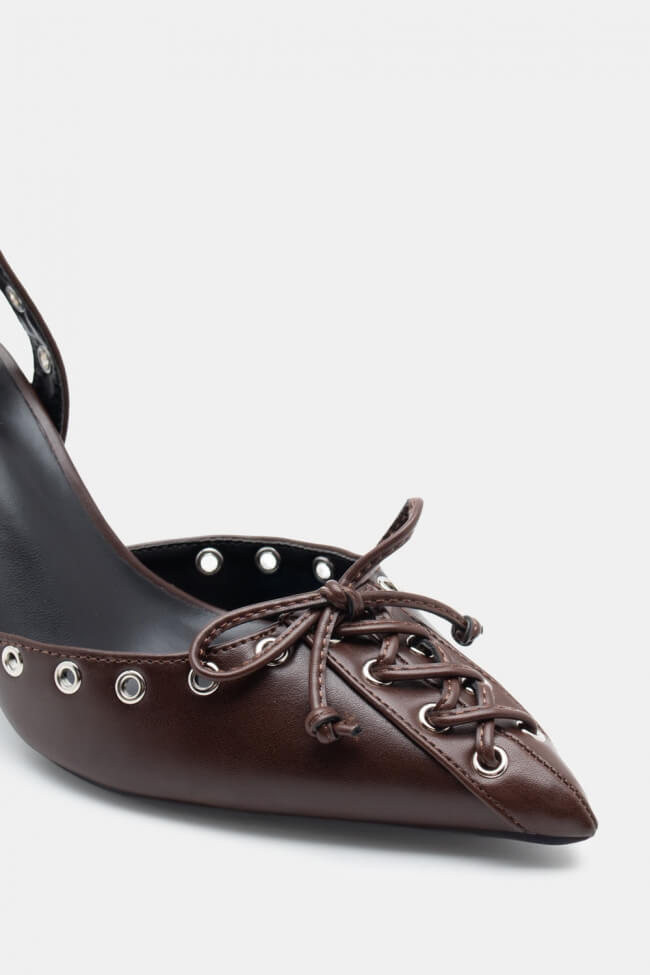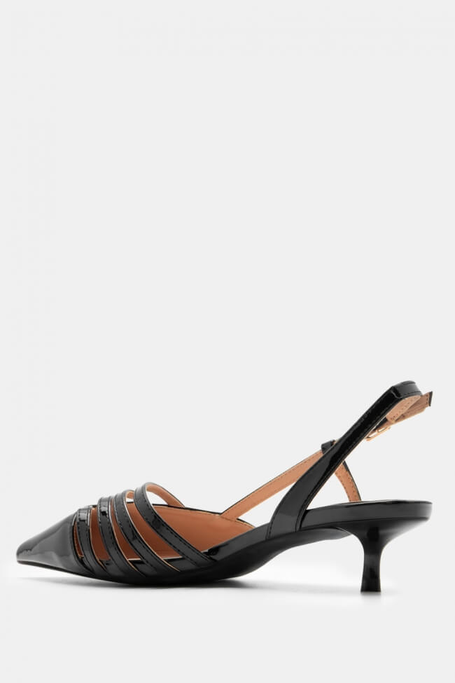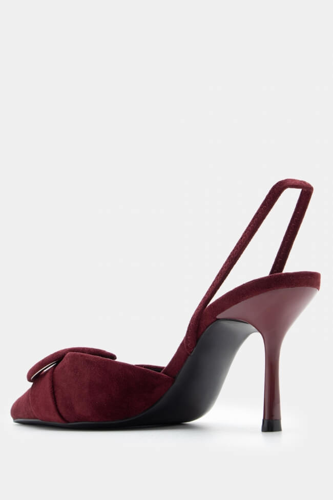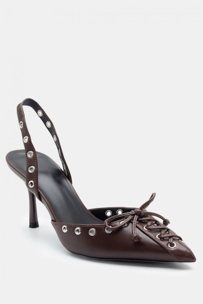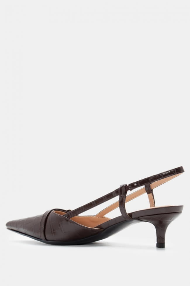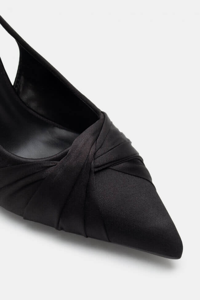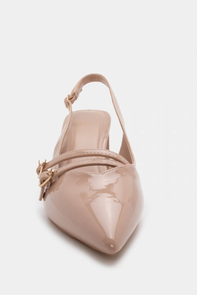 Pentru un look minimalist, poartă pantofi slingback cu vârf ascuțit cu pantaloni croiți și o cămașă sau blazer. Dacă alegi pantofi cu ornamente, combină-i cu o fustă midi și bijuterii minimaliste pentru un rezultat sofisticat.