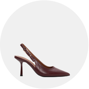 Pantofi slingback cu vârf ascuțit, baretuță, toc jos și cataramă.
