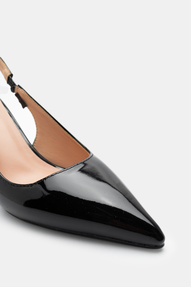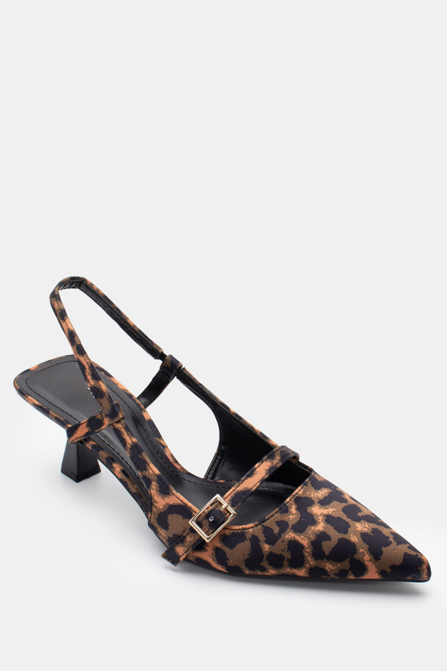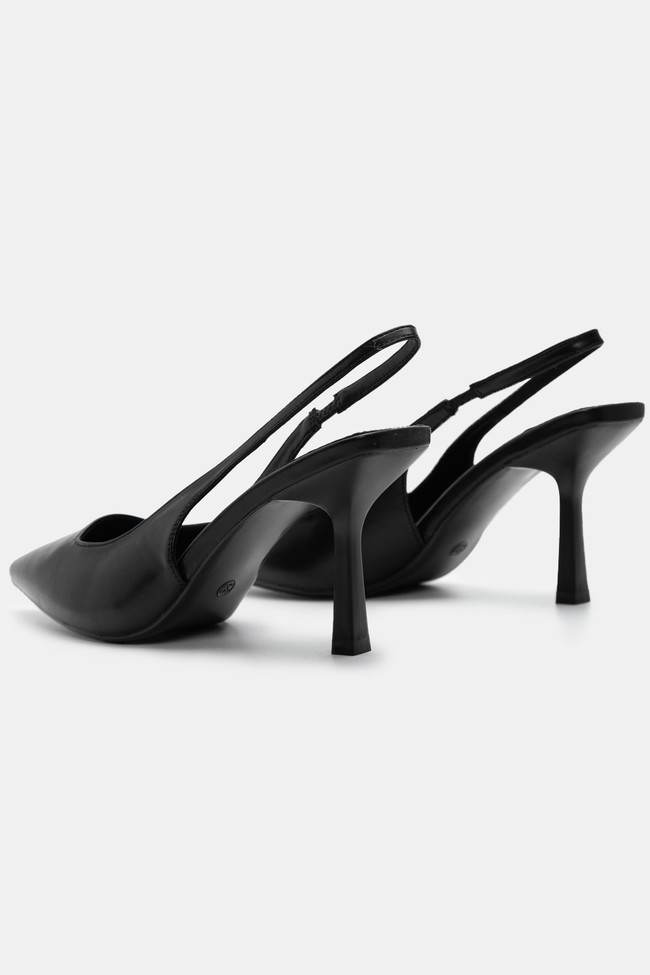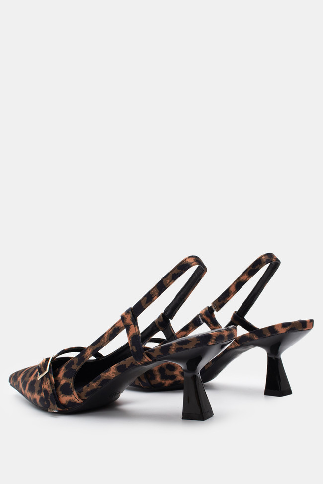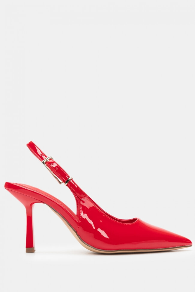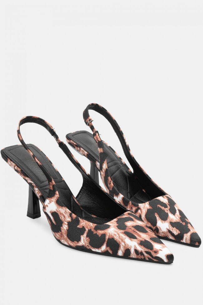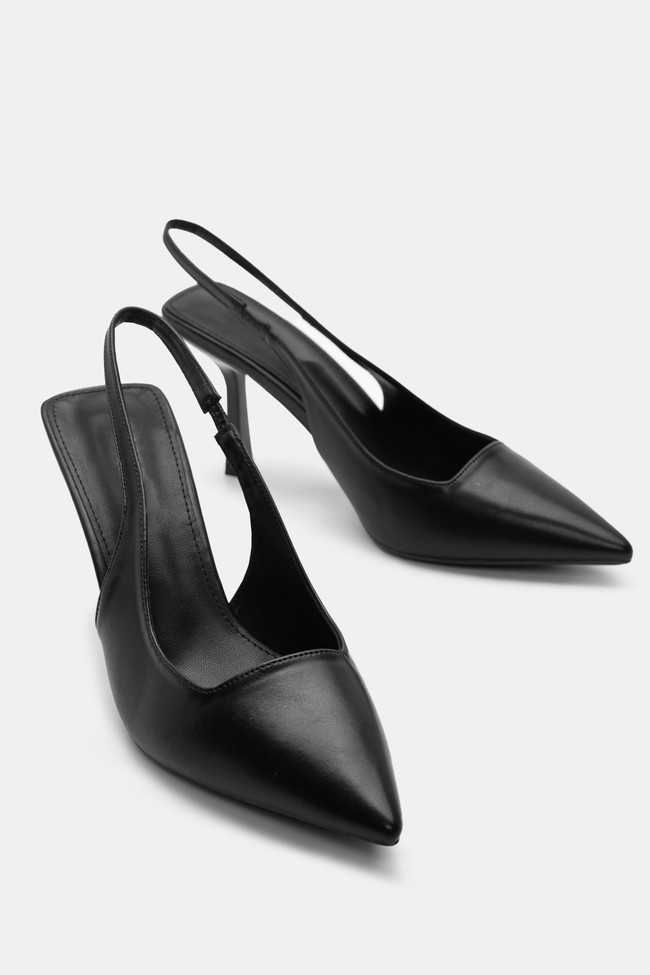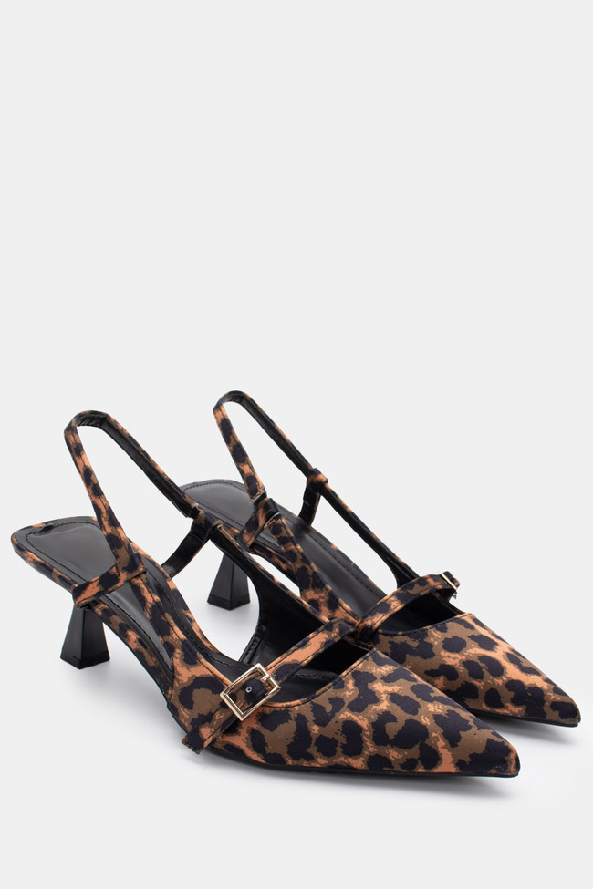Pantofi cu toc deschis, cu vârf ascuțit și curea decorativă