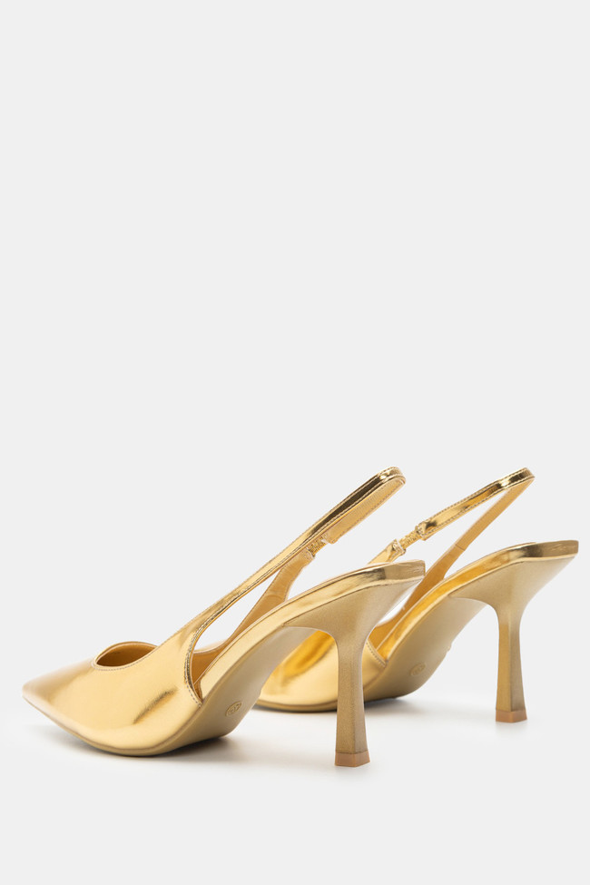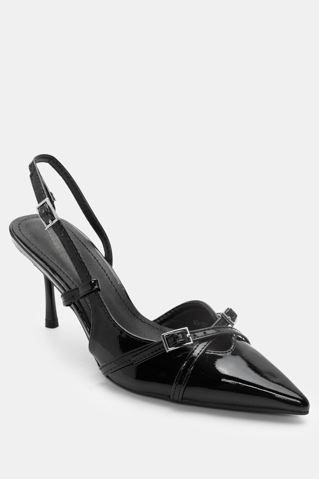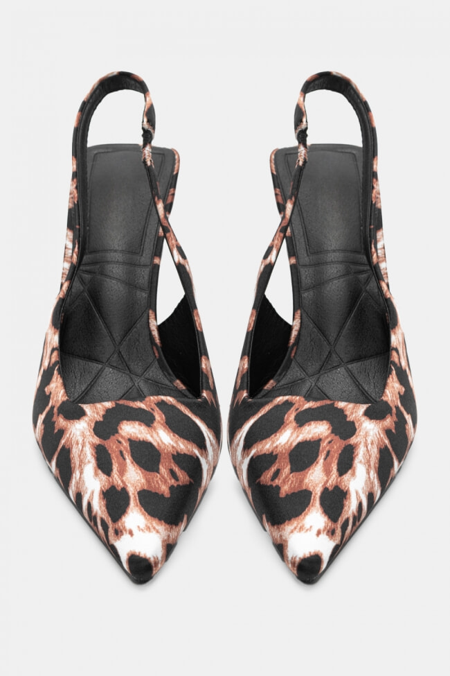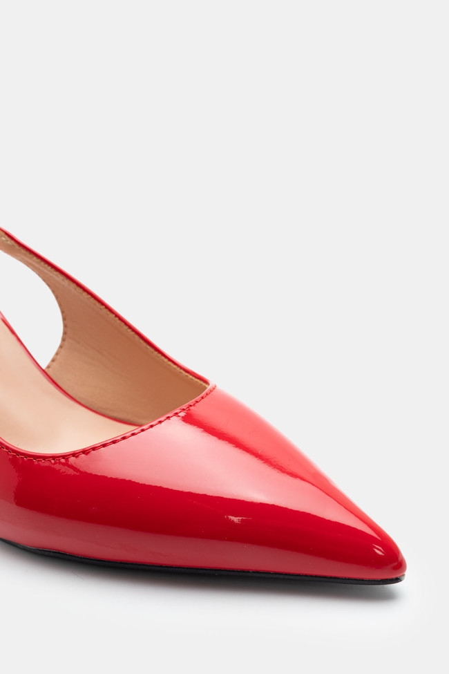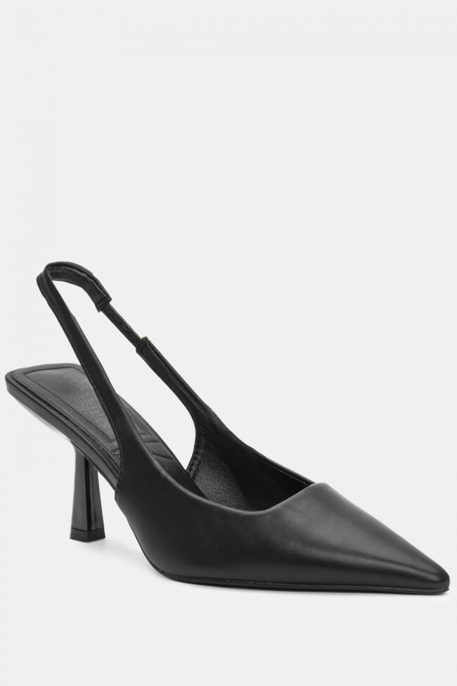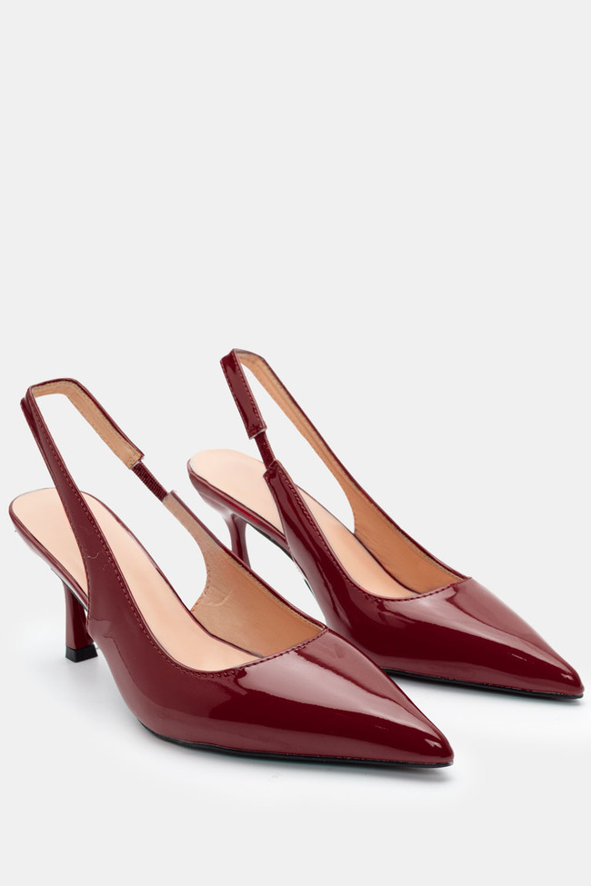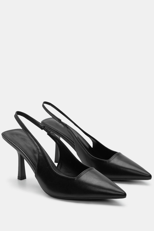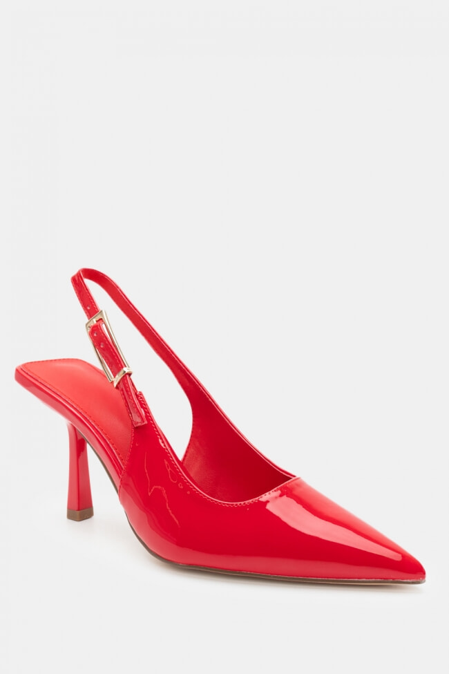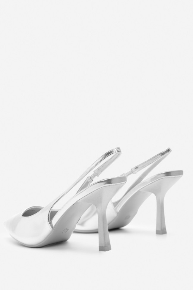 Pantofi cu toc deschis, cu vârf ascuțit și curea decorativă