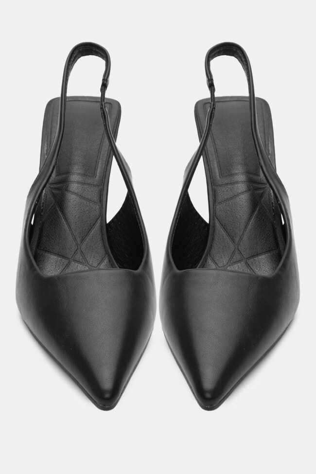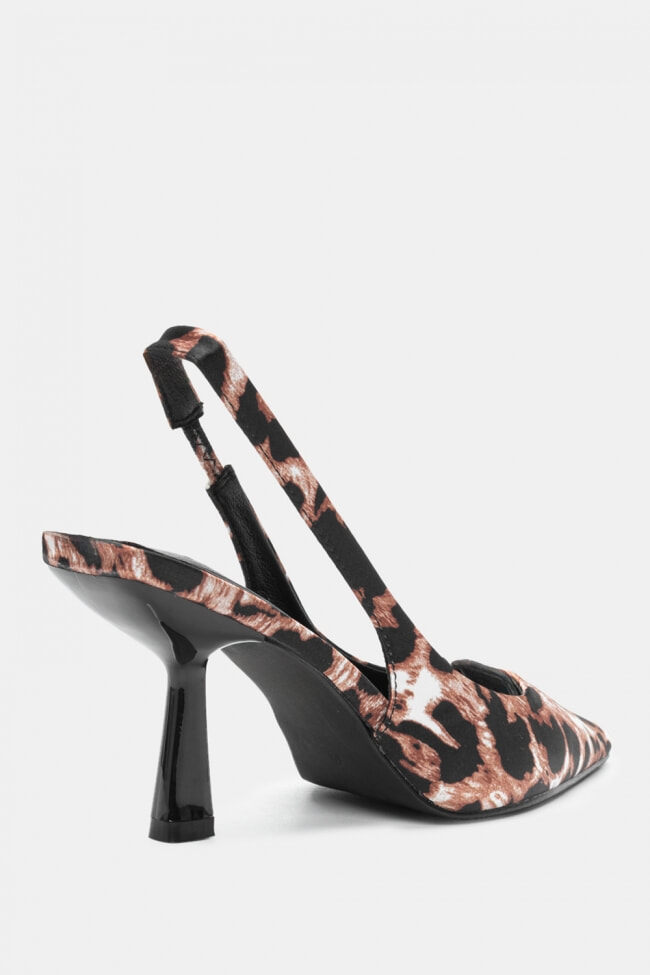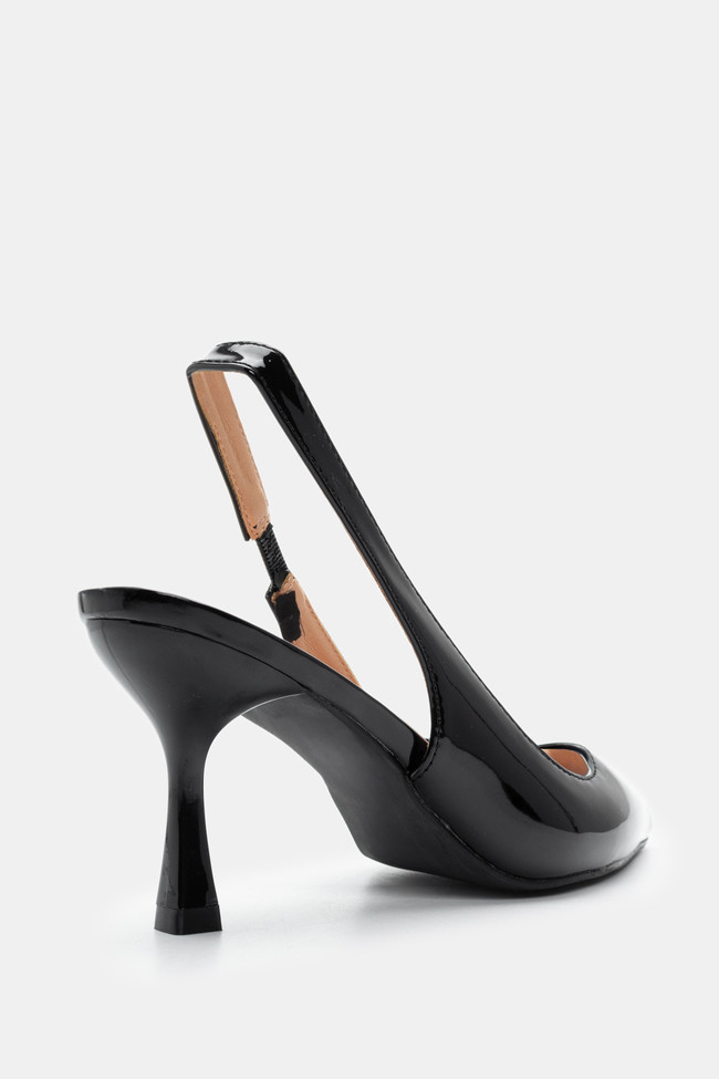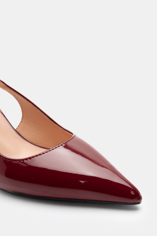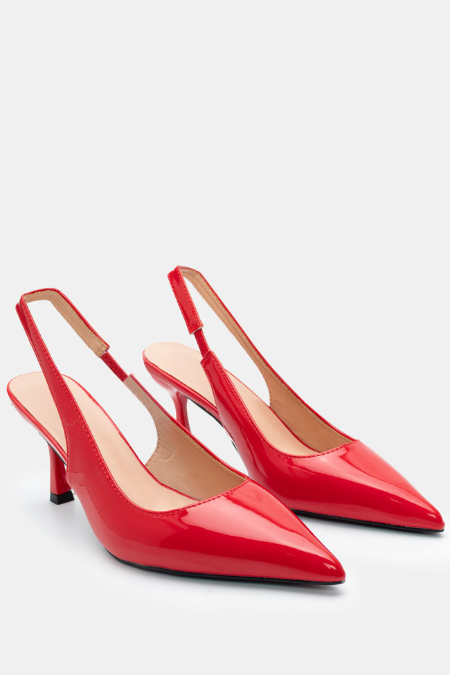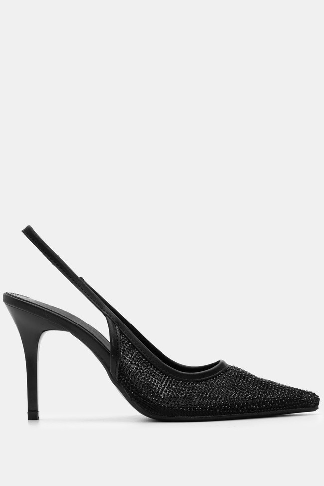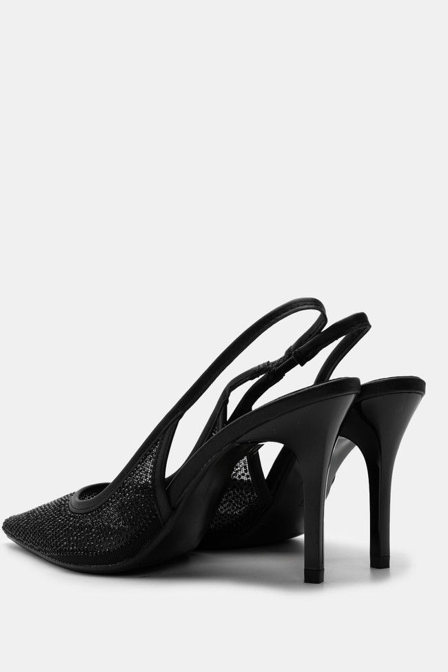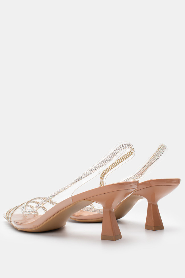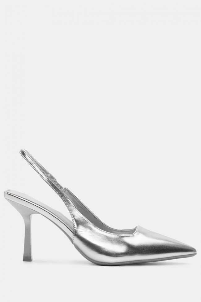 Pantofi cu toc deschis, cu vârf ascuțit și curea decorativă