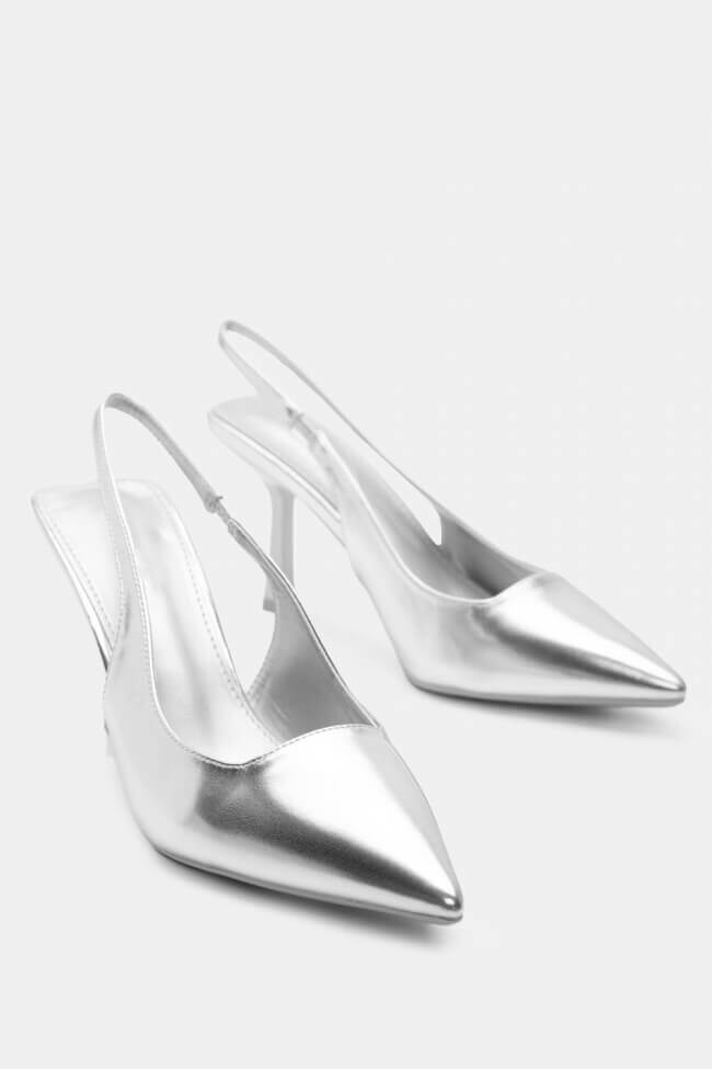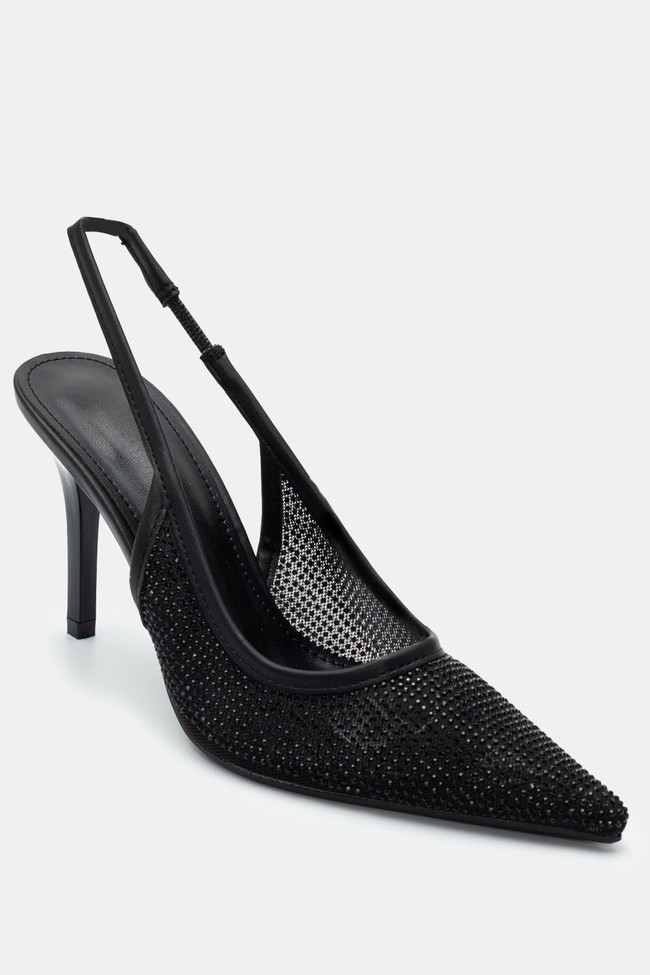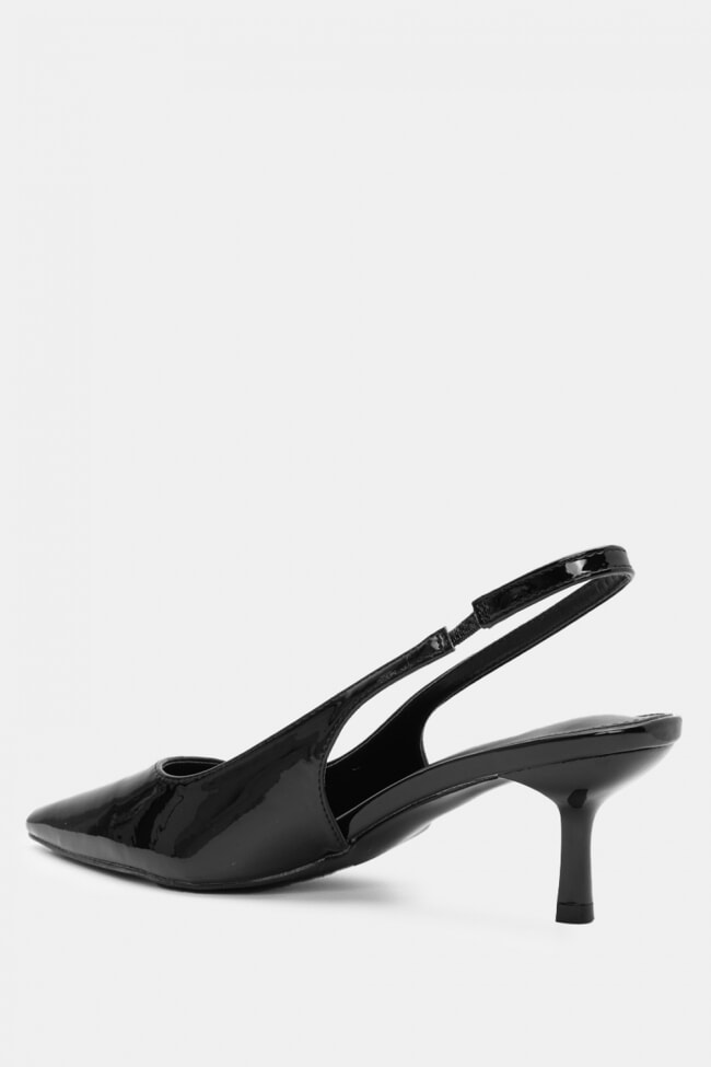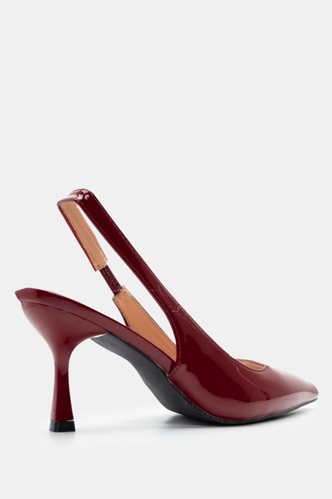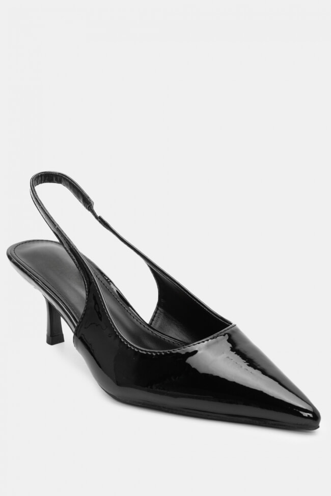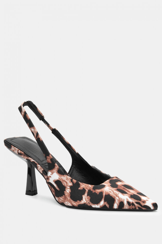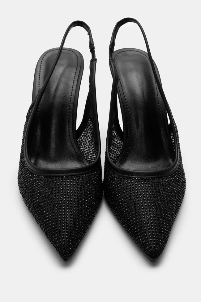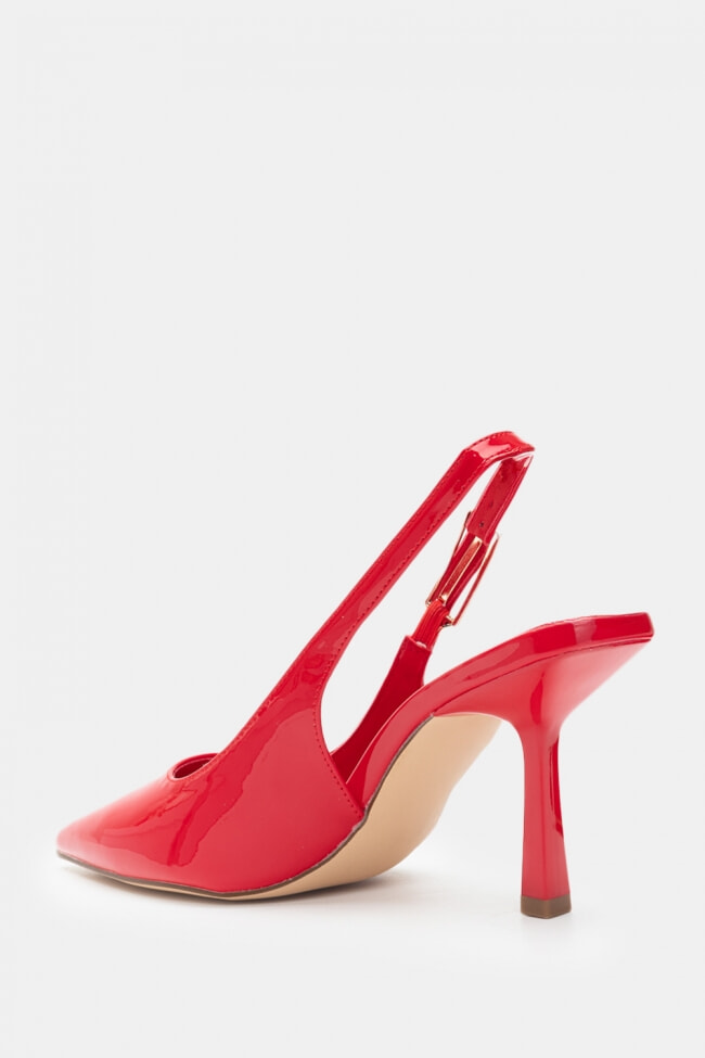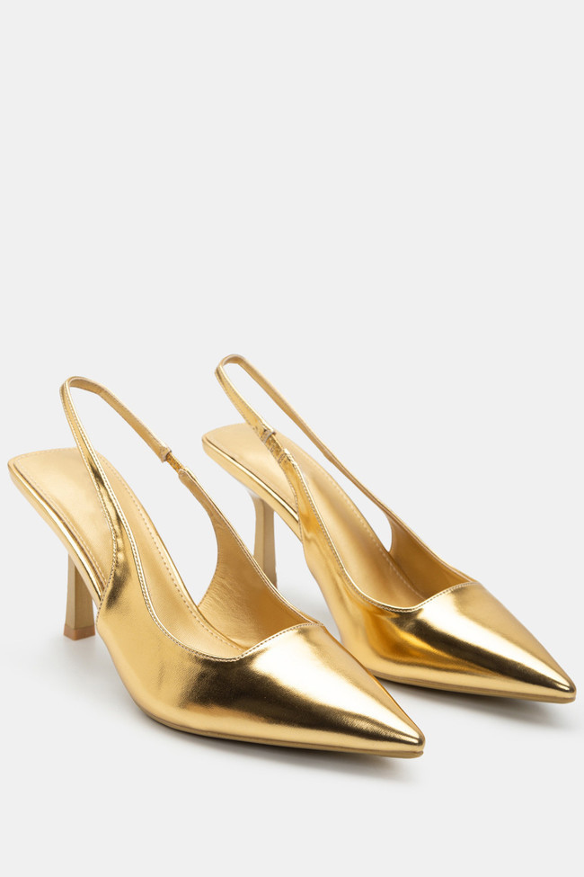 Pantofi cu toc deschis, cu vârf ascuțit și curea decorativă