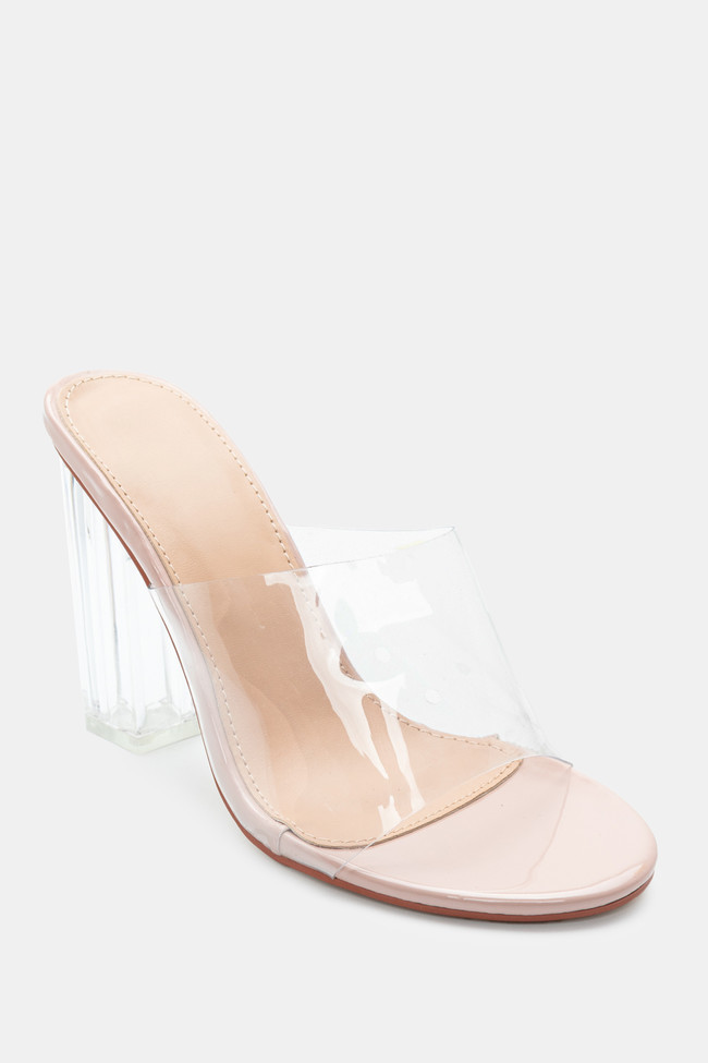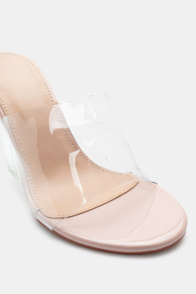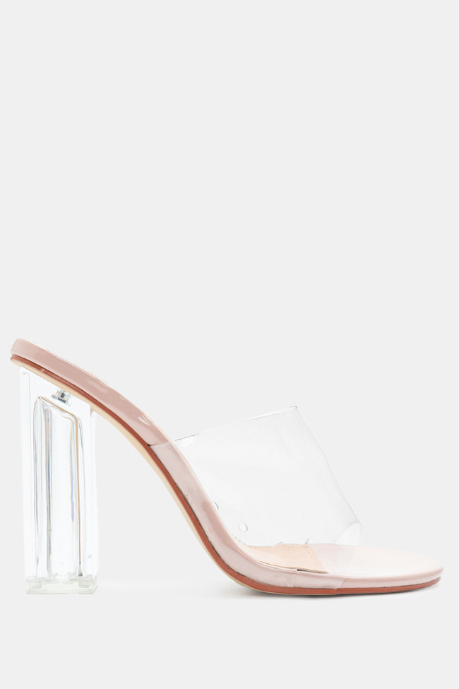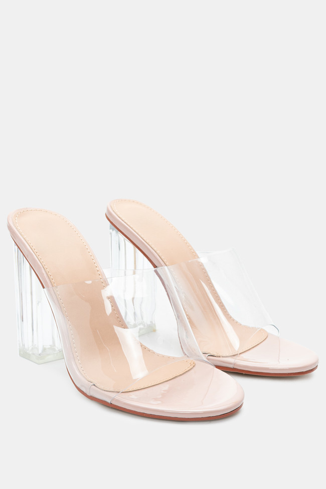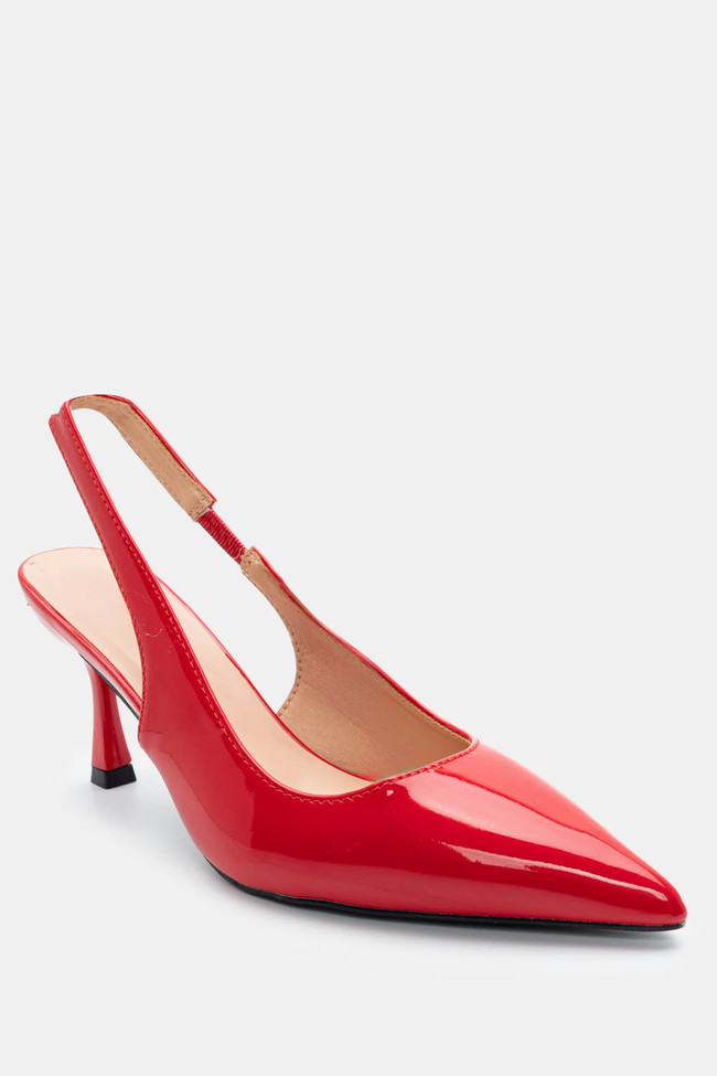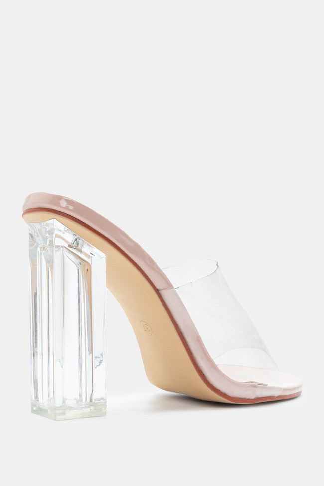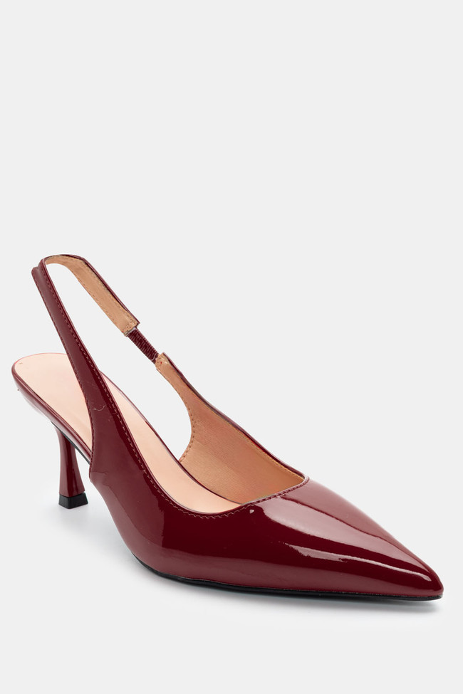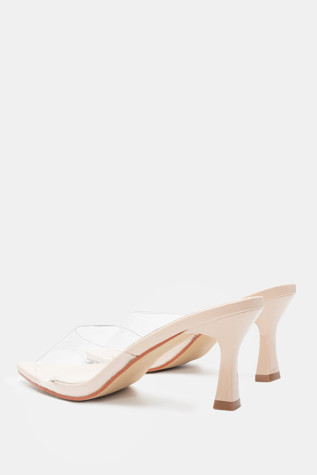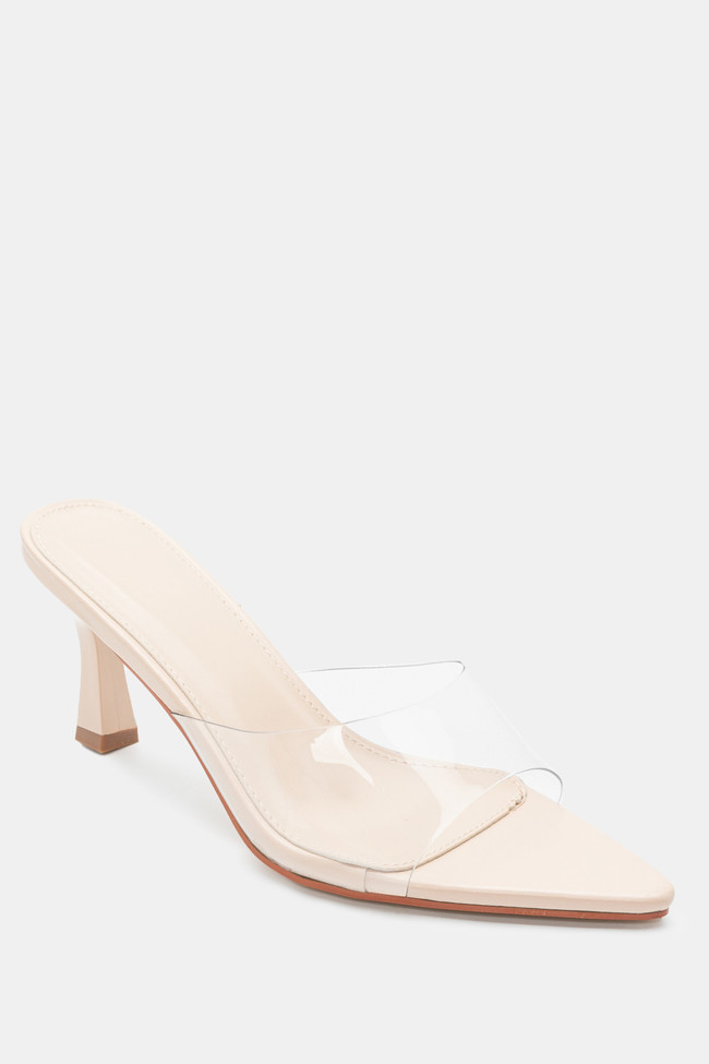 Pantofi cu toc deschis, cu vârf ascuțit și curea decorativă
