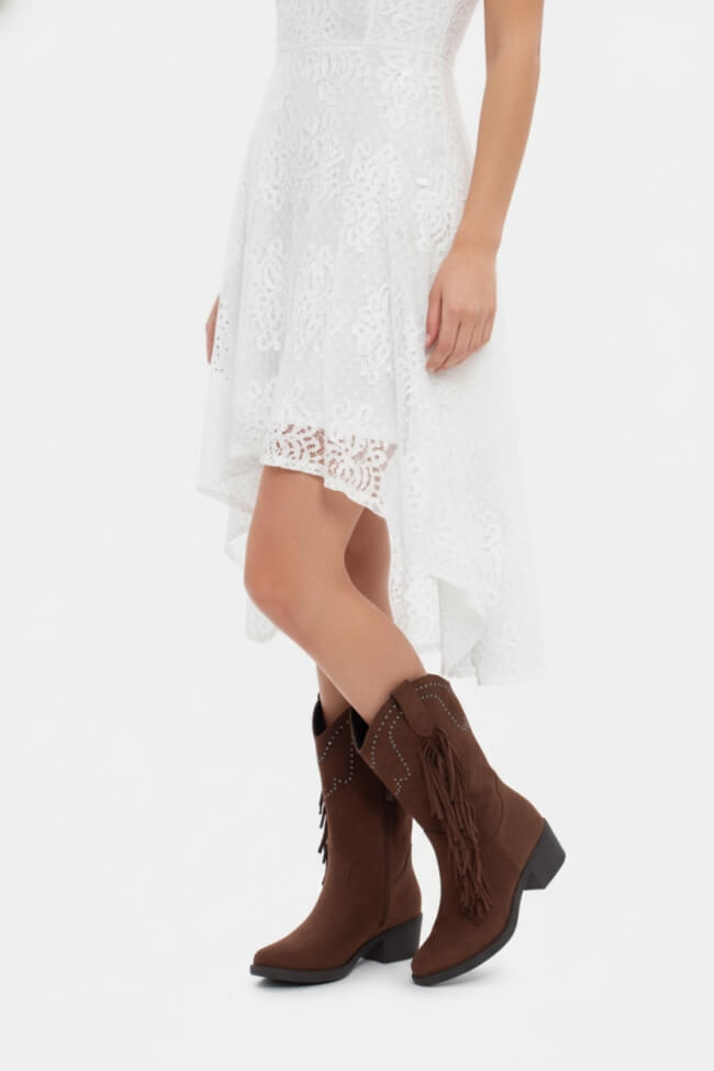 Stivaletti Cowboy con Frange e Borchie Decorative