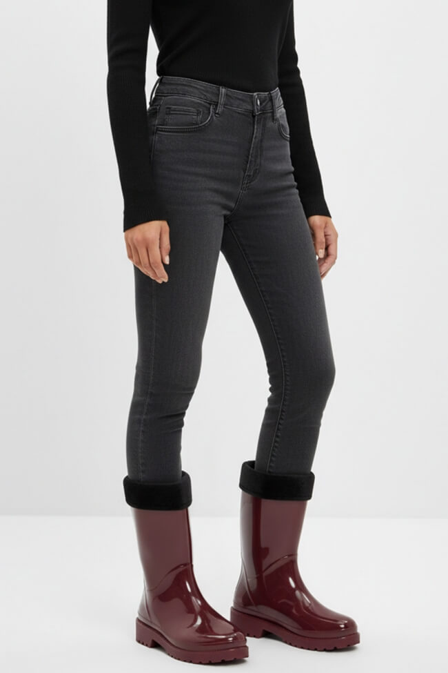 Stivali con Effetto Risvolto con Cerniera Decorativa