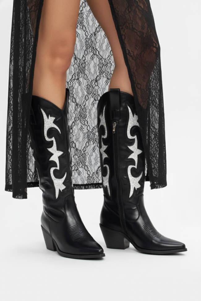 Stivali da Cowboy con Ricamo di Glitter