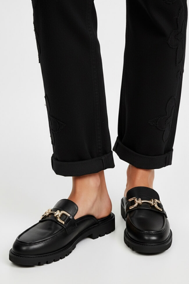 Mules Loafers con Fibbia Decorativa