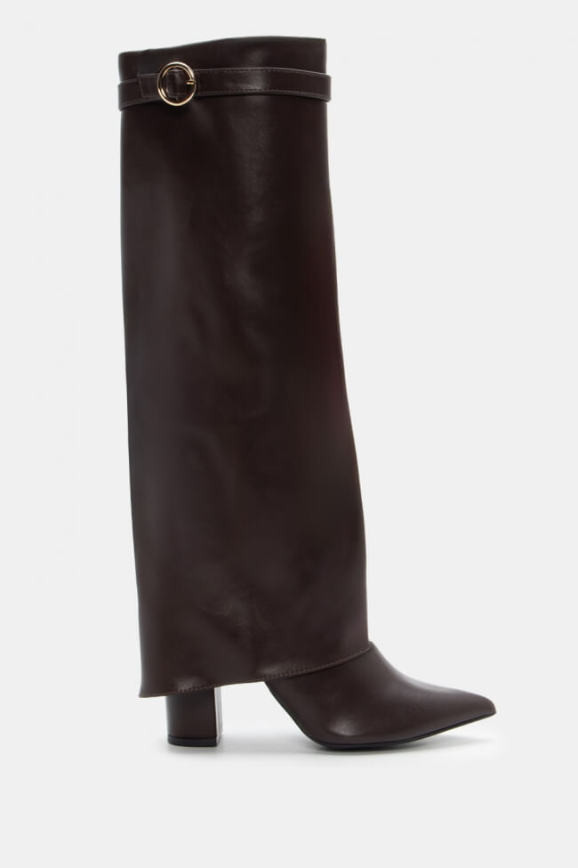 Μπότες Μυτερές με Εφέ Αναδιπλούμενης Φάσας & Διακοσμητικό Λουράκι