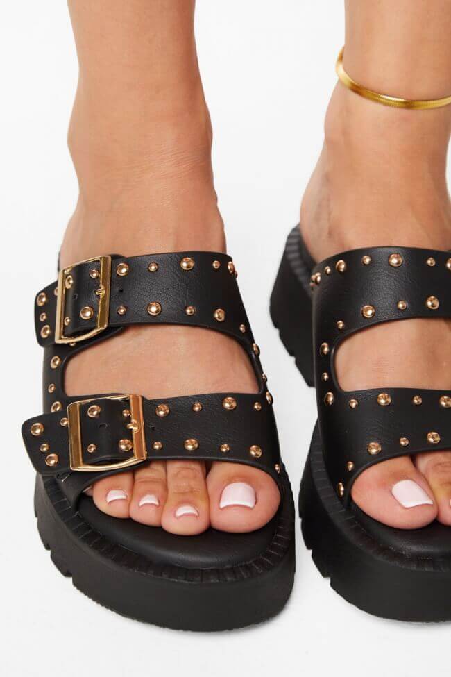 Sandale Flatform cu Catarame Duble