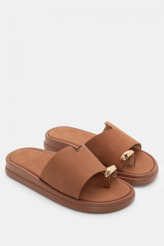 Sandale Flatform cu Detaliu Decorativ Metalic