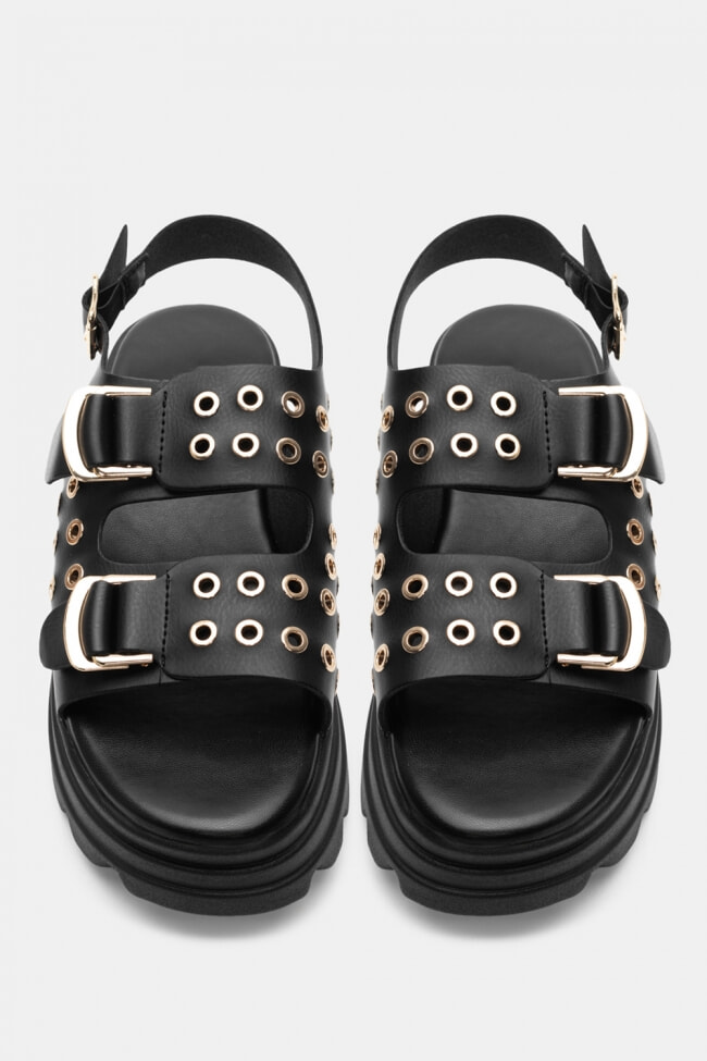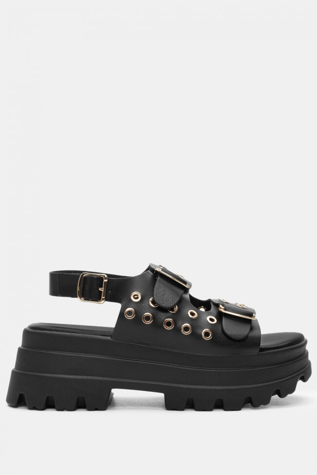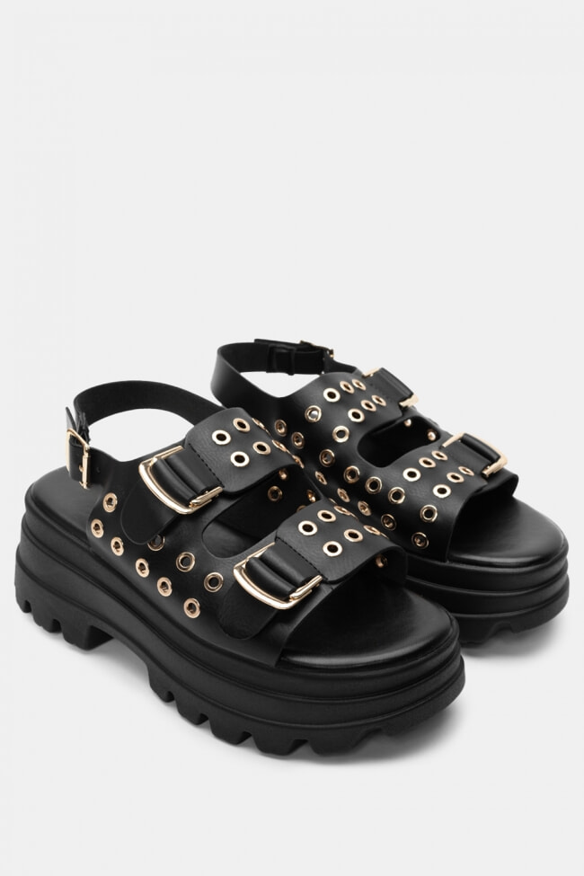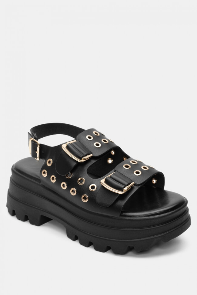 Sandale Flatform cu Catarame Duble & Ținte
