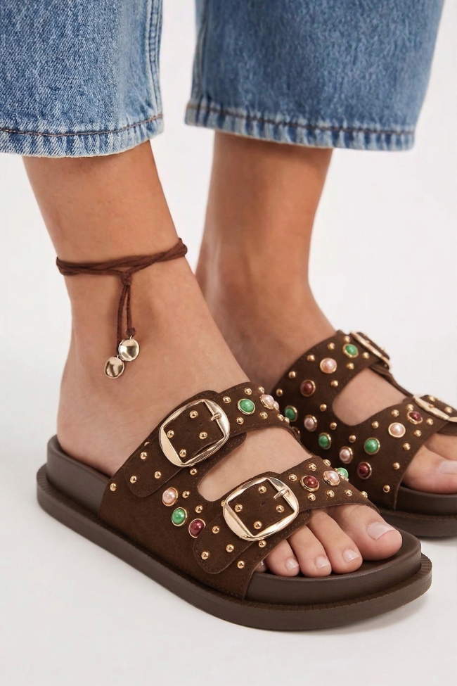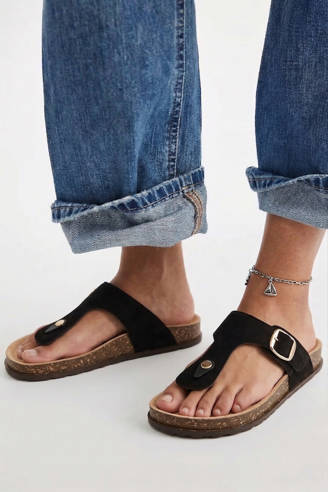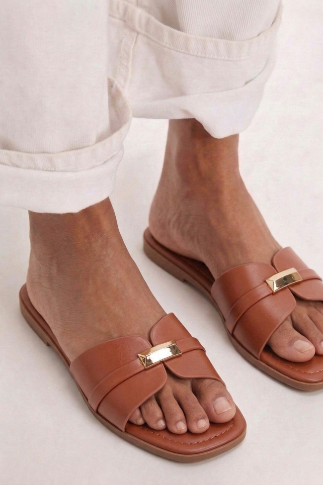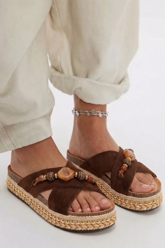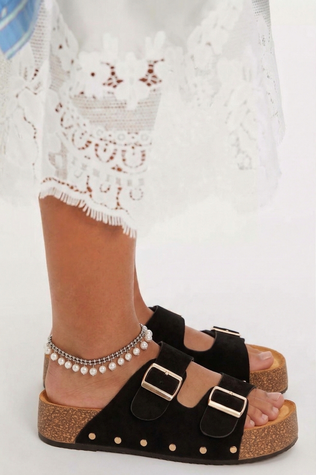Sandali flatform con cinturini incrociati e dettaglio metallico