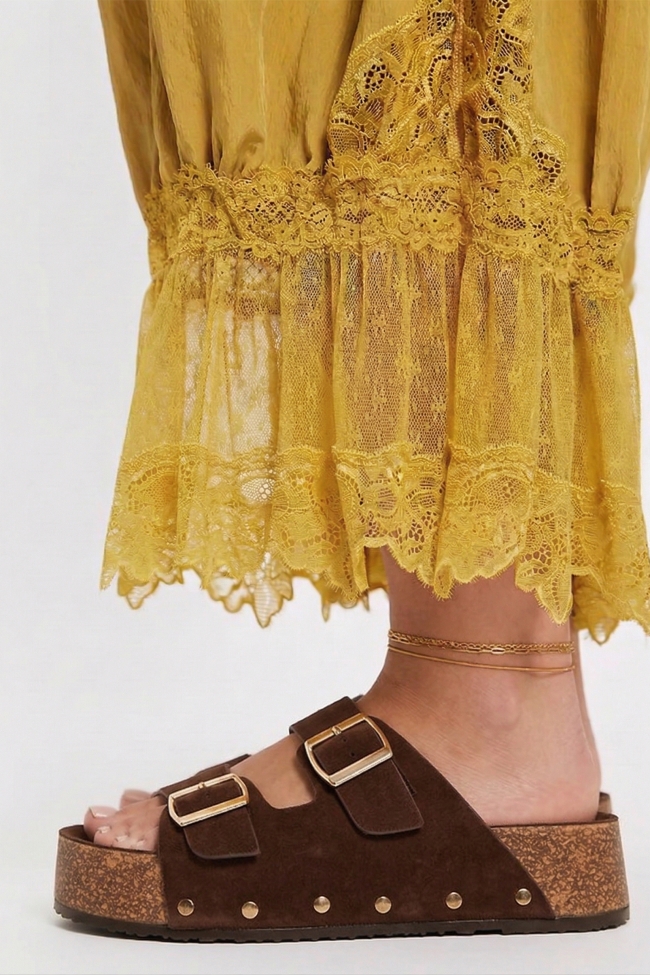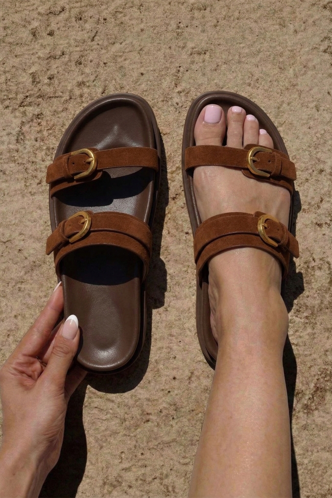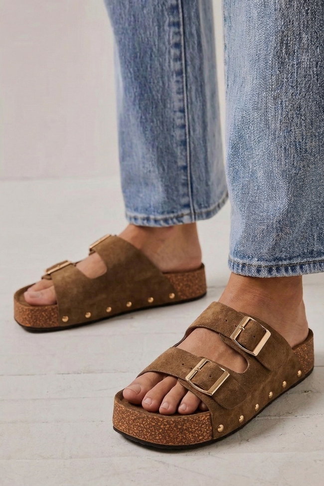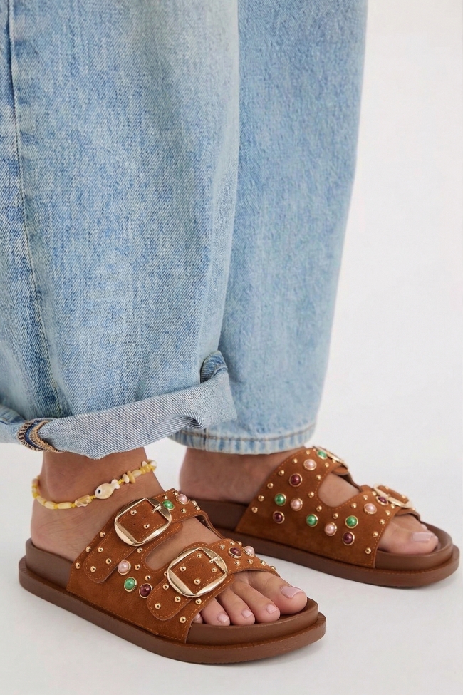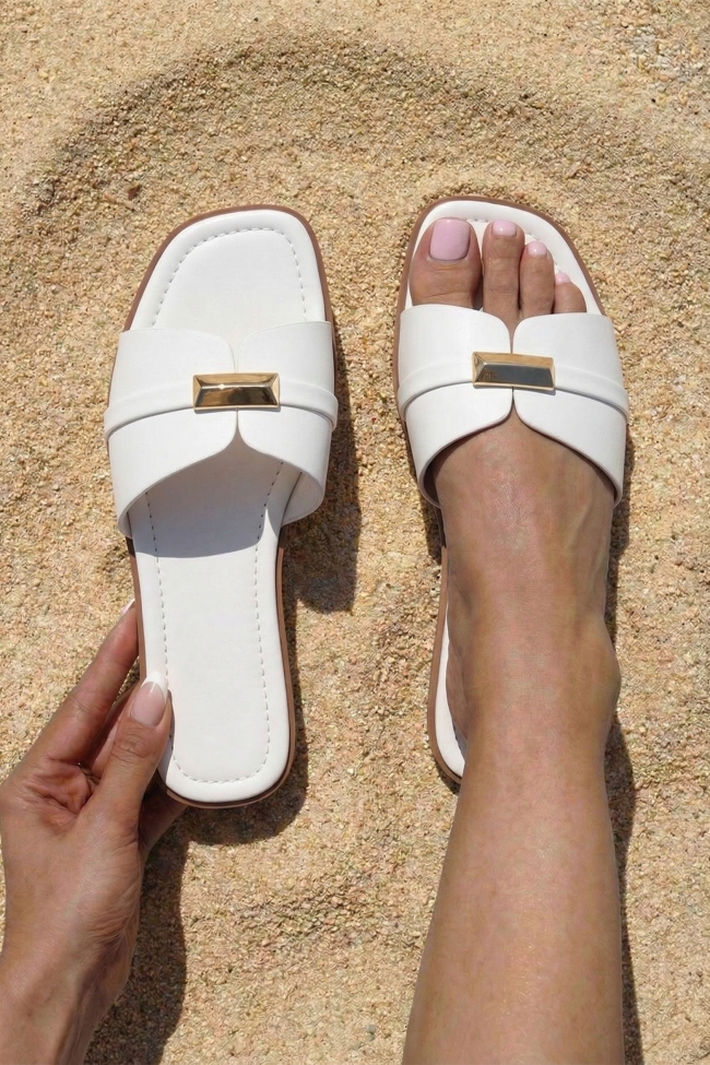 Sandali flatform con cinturini incrociati e dettaglio metallico