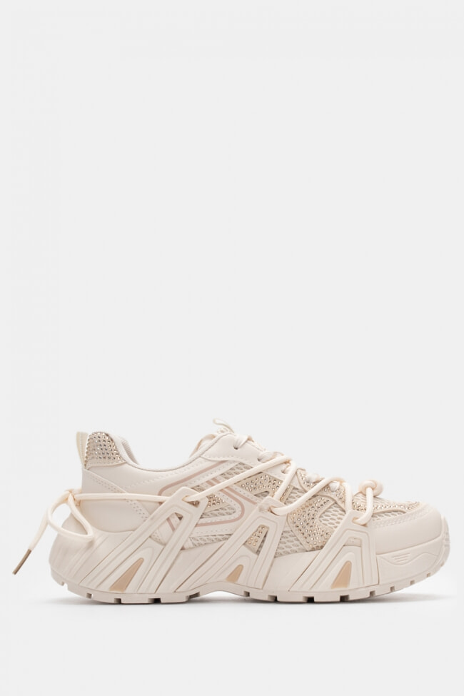 Sneakers Chunky με Διπλά Κορδόνια & Strass