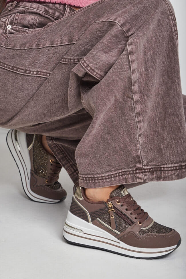 Sneakers σε Συνδυασμό Υλικών με Glitter