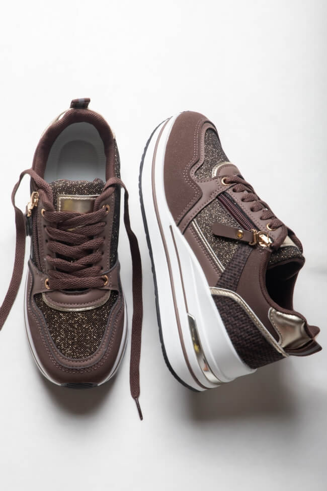 Sneakers Δίσολα με Strass & Φερμουάρ