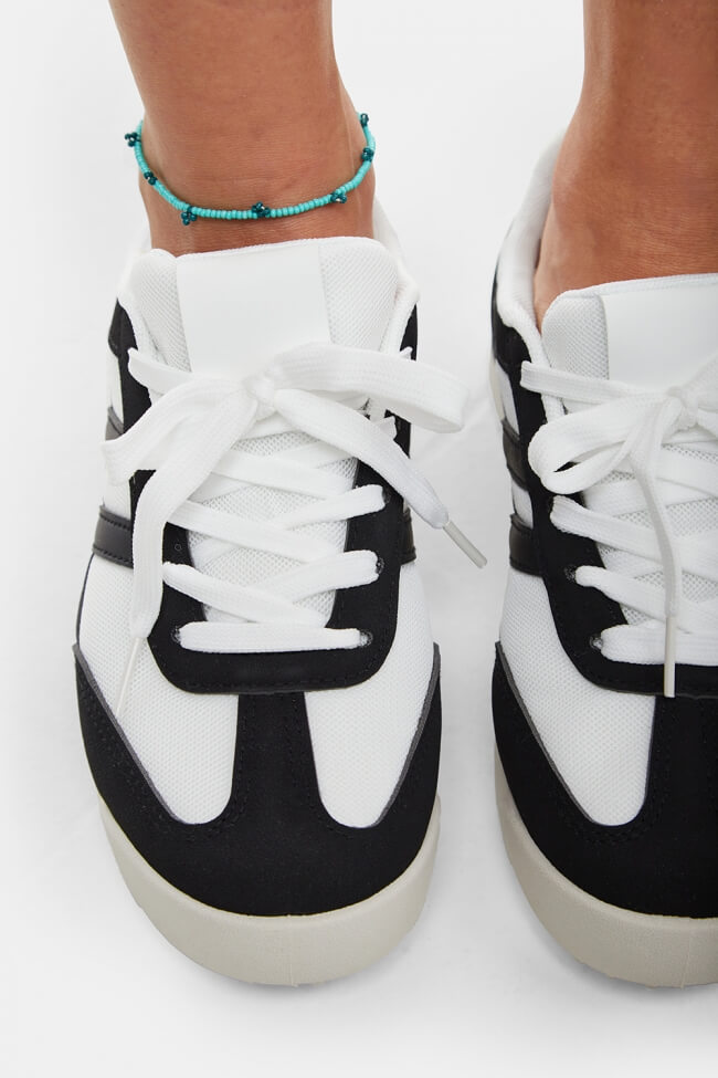 Αν επιλέξεις sneakers σε έντονα χρώματα, μπορείς να τα συνδυάσεις με ουδέτερα ρούχα, όπως μαύρα ή λευκά, ώστε τα παπούτσια να είναι το κεντρικό στοιχείο της εμφάνισης.