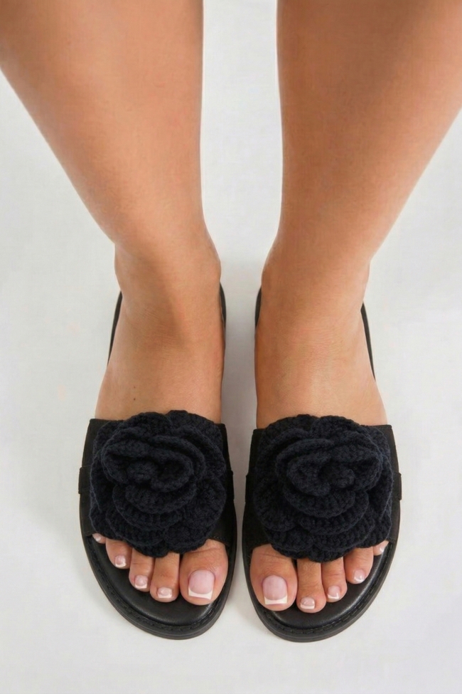 Flat Sandals with Decorative Flower