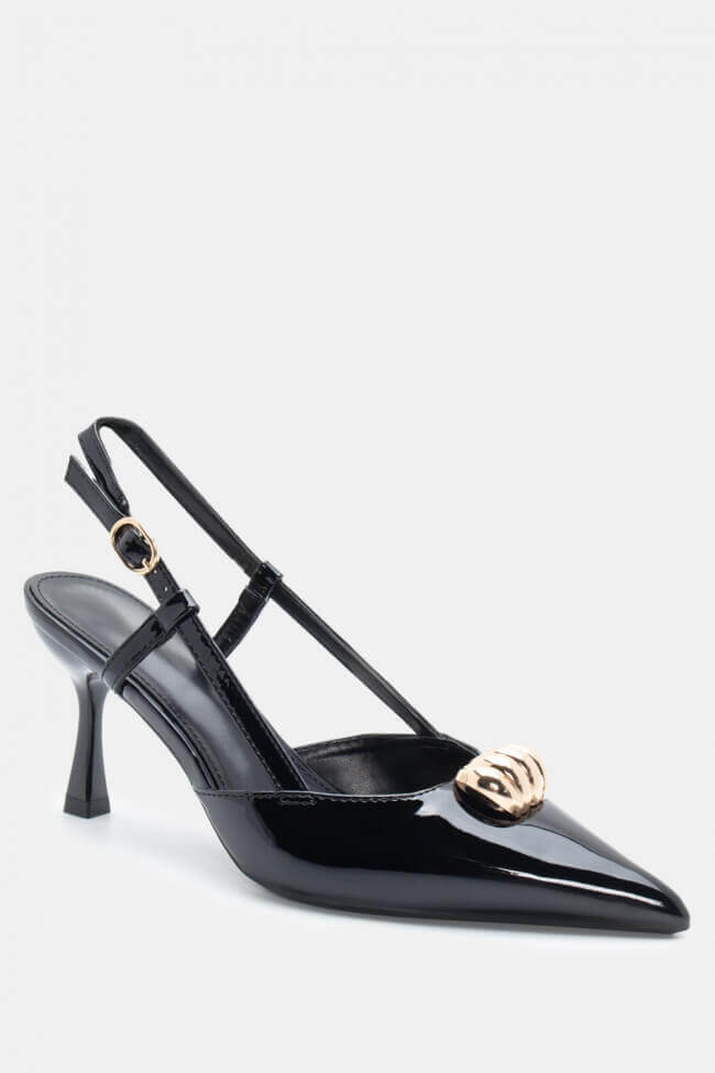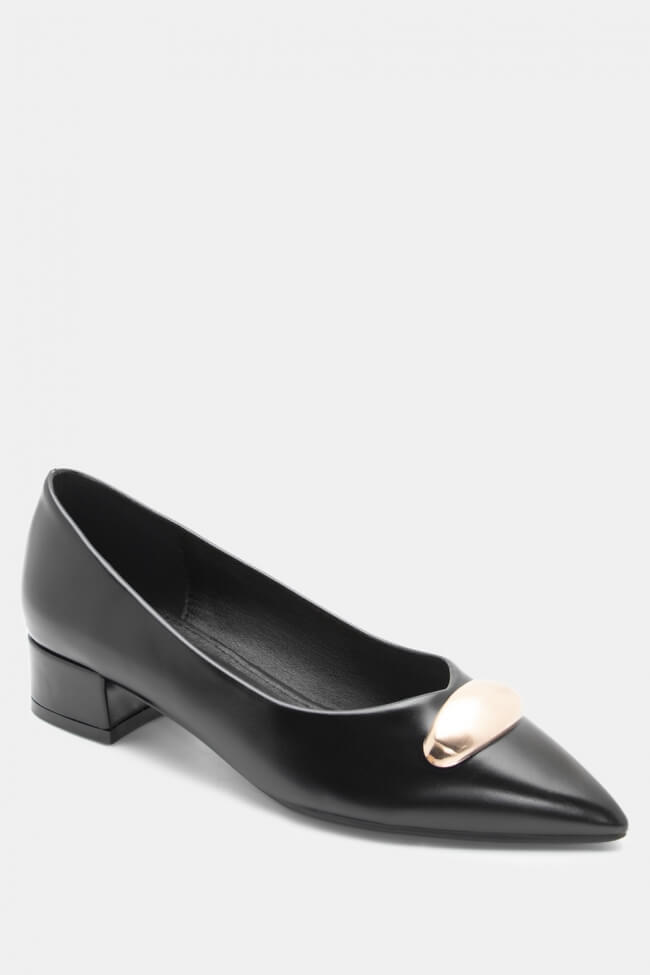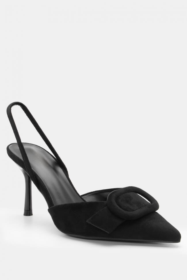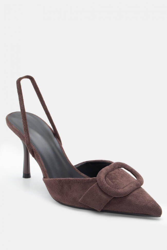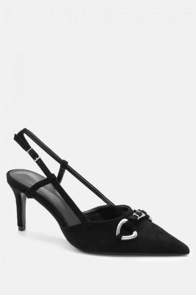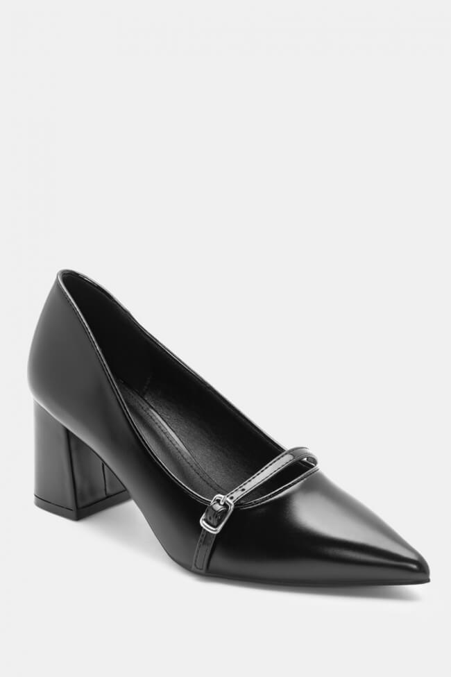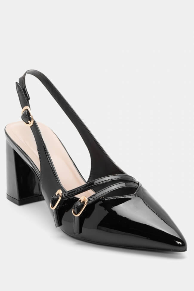 Pointed Toe Pumps with Heel & Decorative Buckle