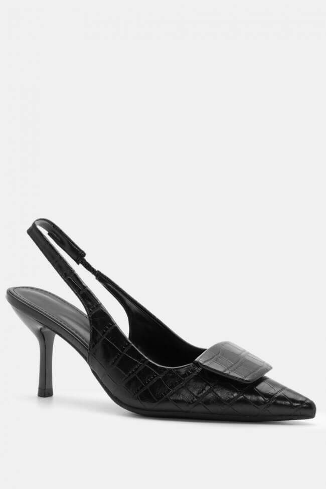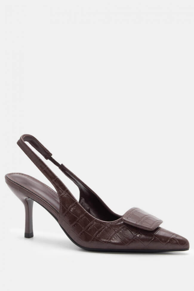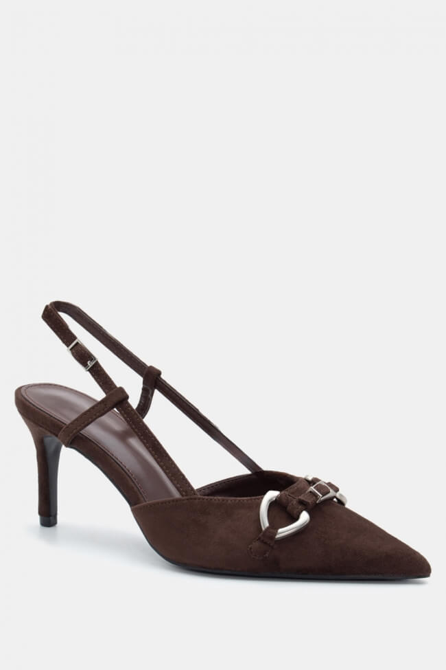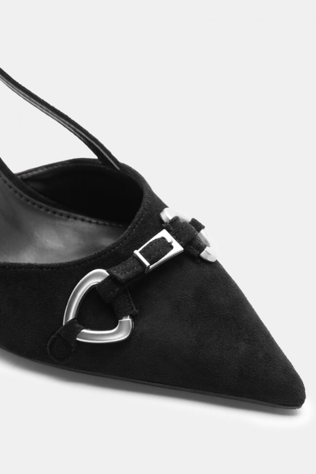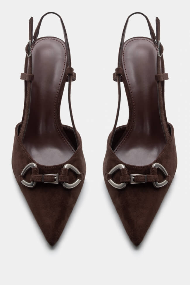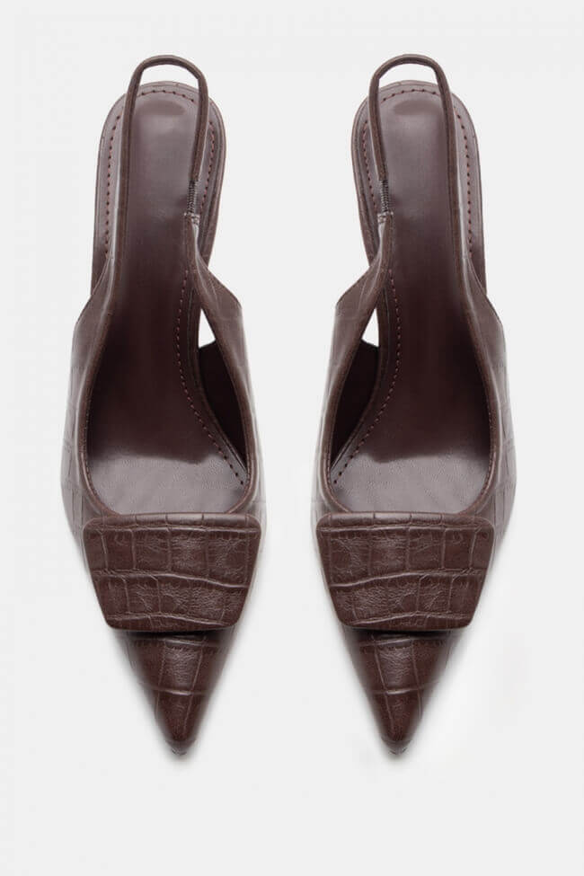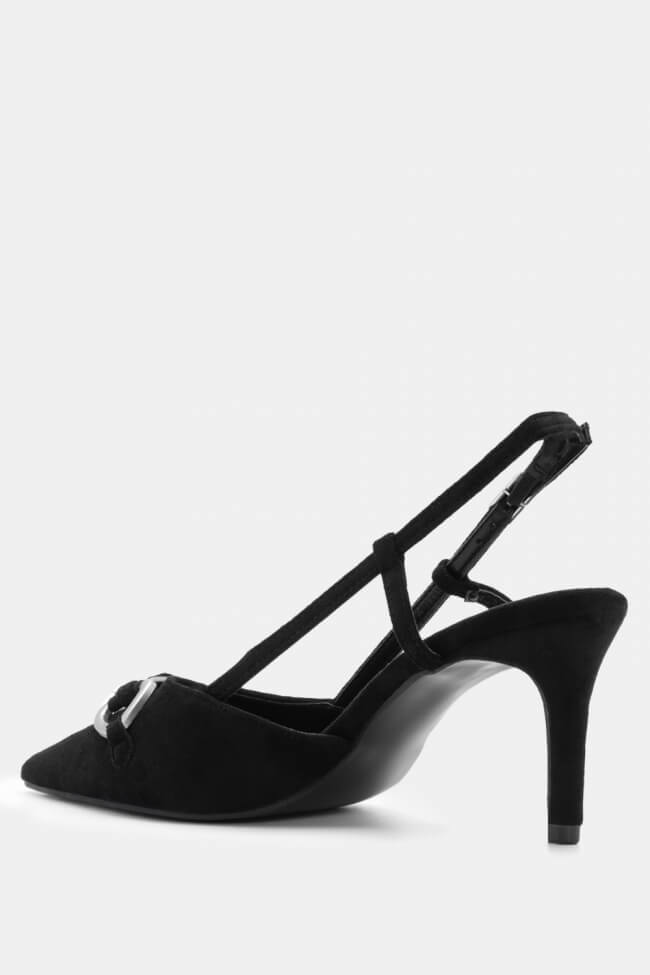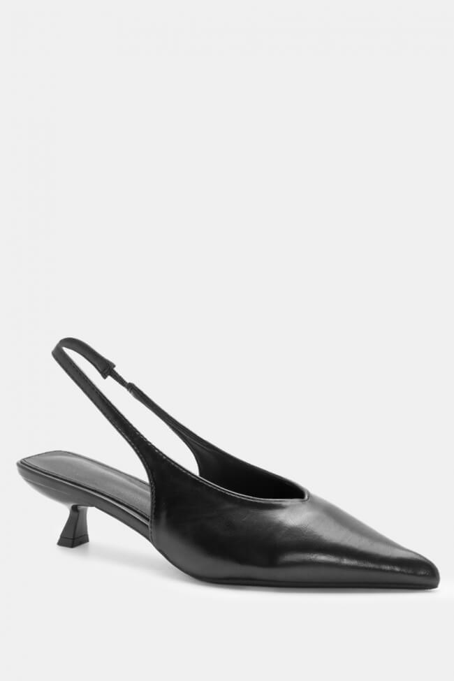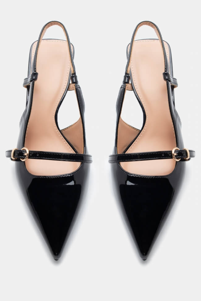 For a minimal look, wear pointed slingback pumps with tailored pants and a shirt or blazer. If you choose pumps with a decorative strap, pair them with a midi skirt and minimal jewelry for a sophisticated result.