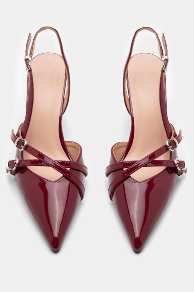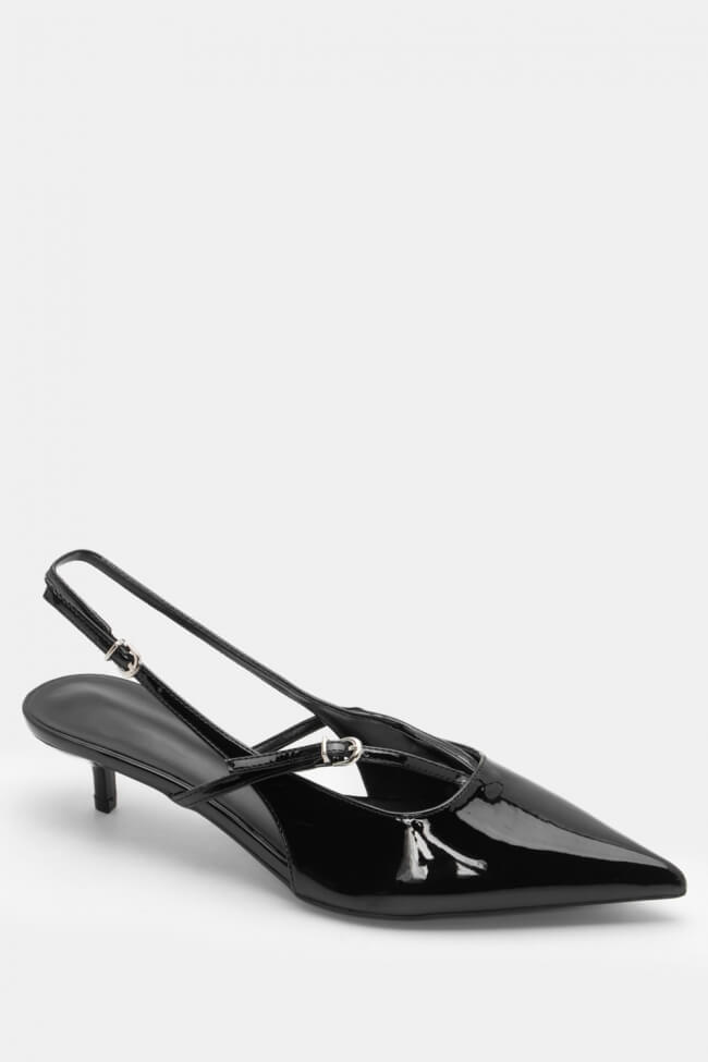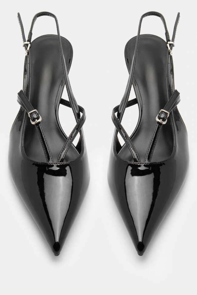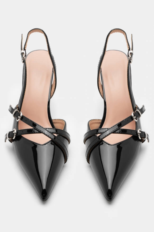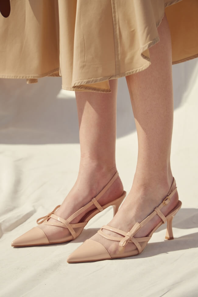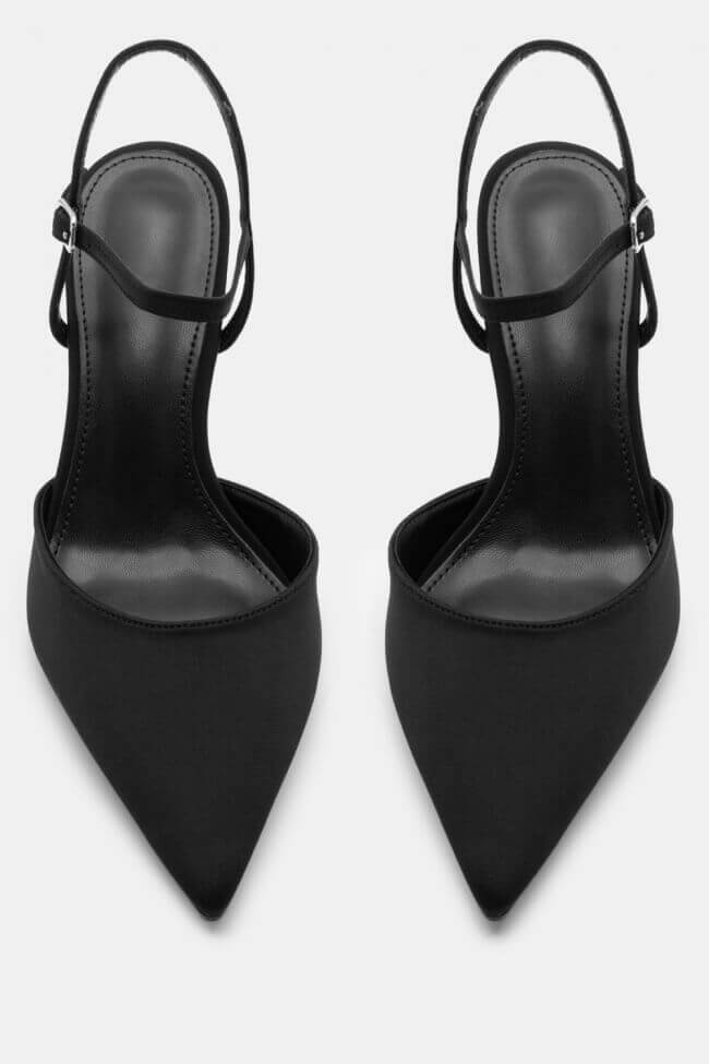 For a minimal look, wear pointed slingback pumps with tailored pants and a shirt or blazer. If you choose pumps with a decorative strap, pair them with a midi skirt and minimal jewelry for a sophisticated result.