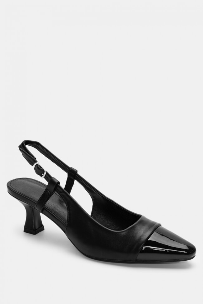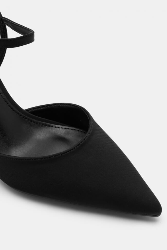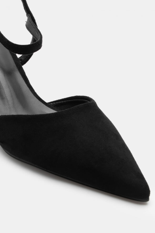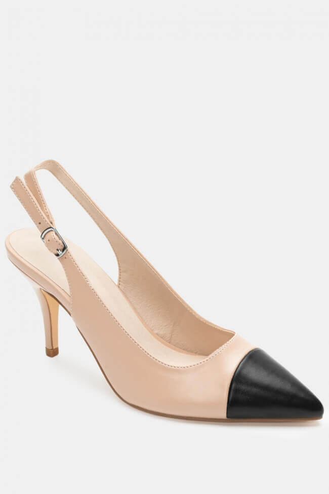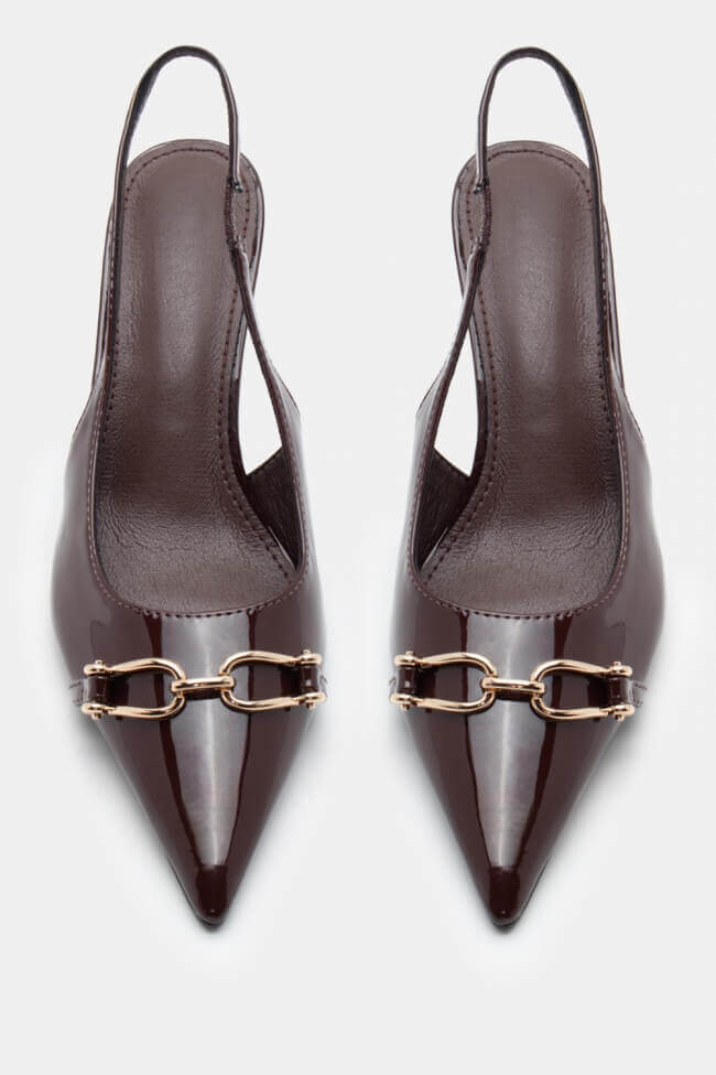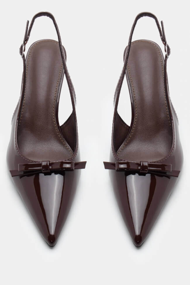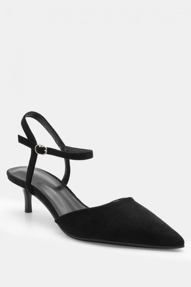 For a minimal look, wear pointed slingback pumps with tailored pants and a shirt or blazer. If you choose pumps with a decorative strap, pair them with a midi skirt and minimal jewelry for a sophisticated result.