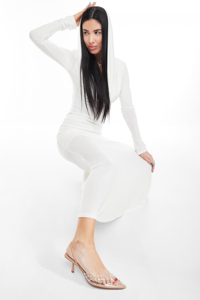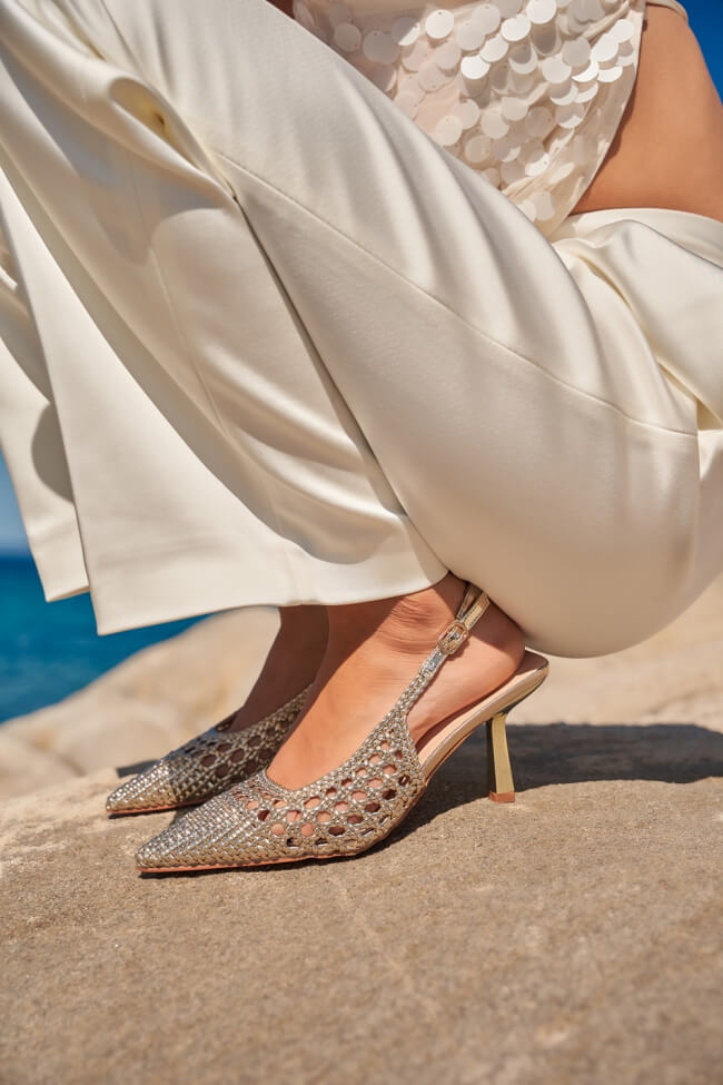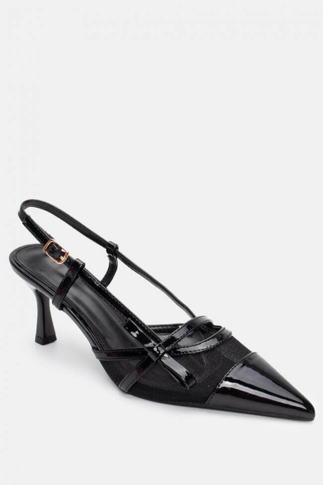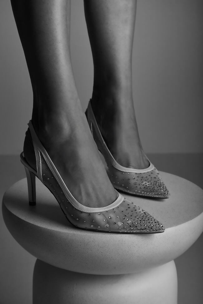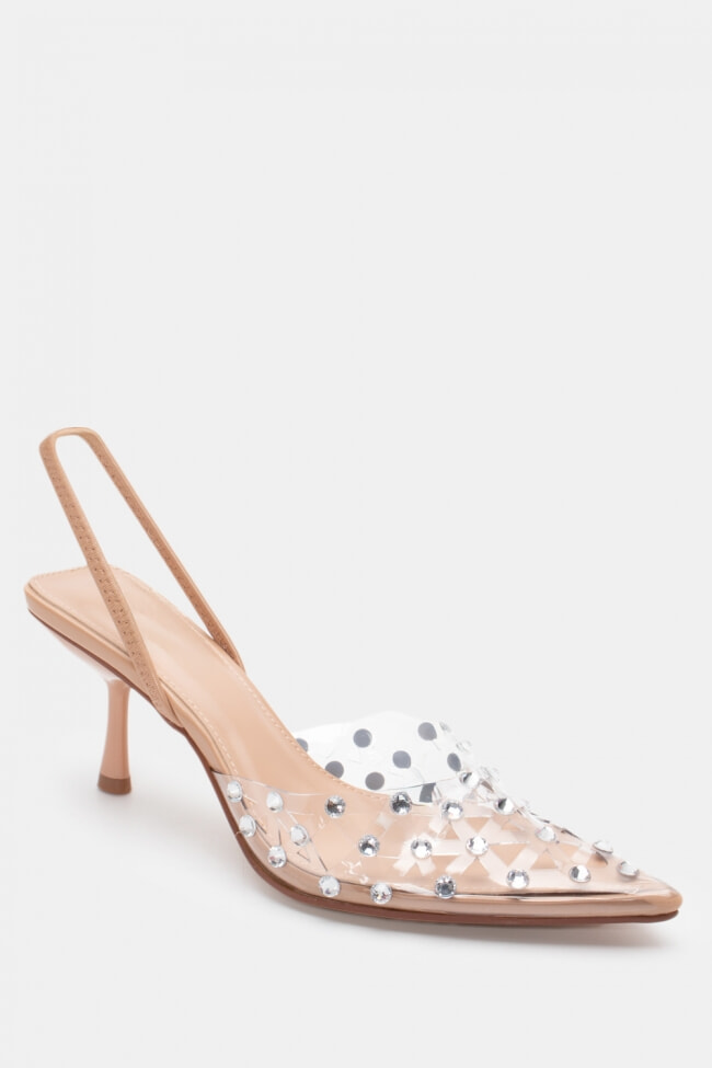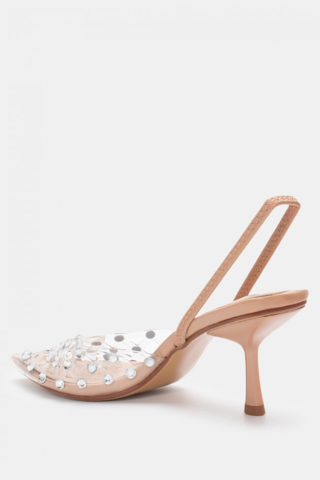 Pointed Toe Heels with Transparent Sections Decorated with Strass