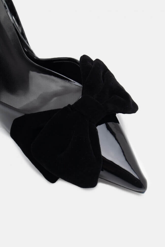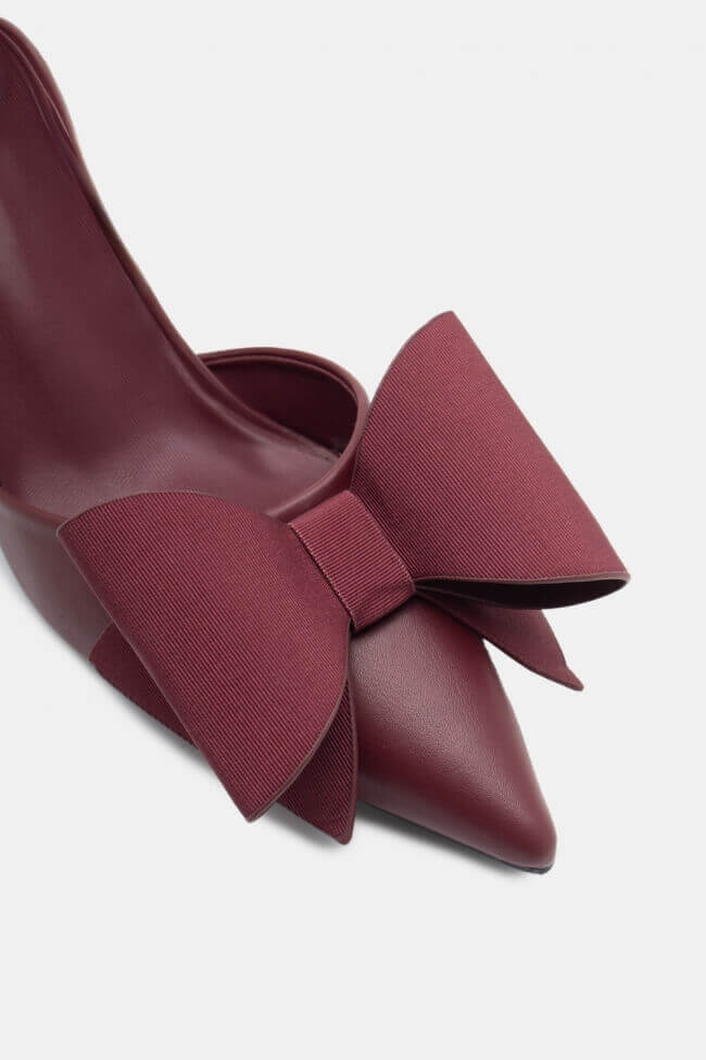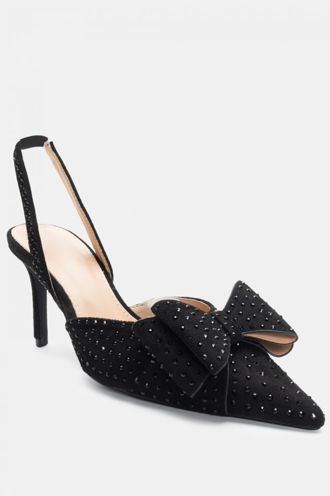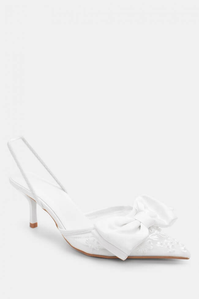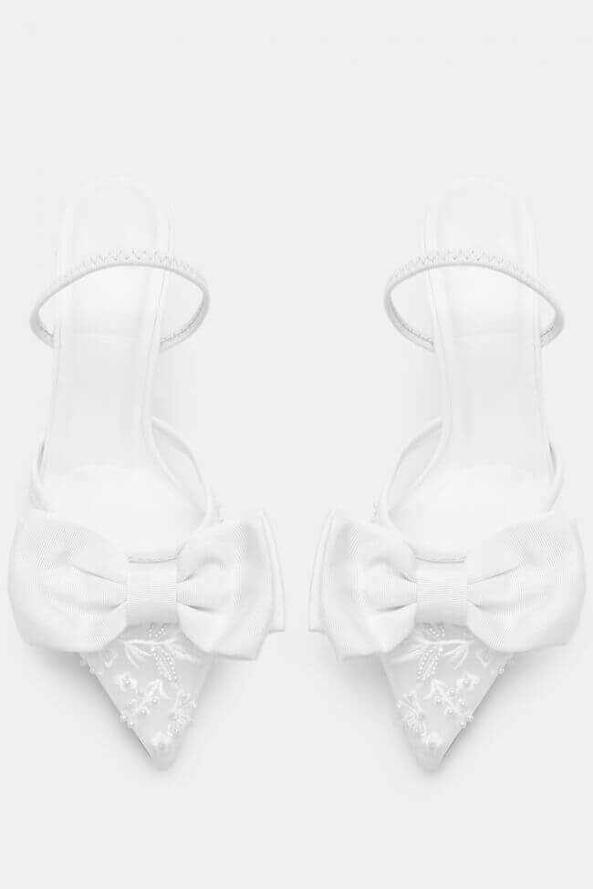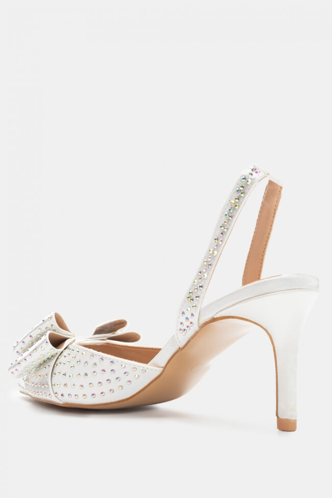 Pointed Toe Pumps with Decorative Bow & Pearls