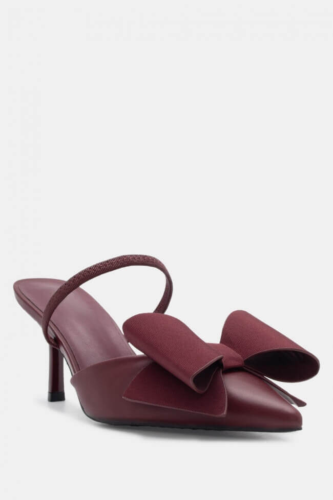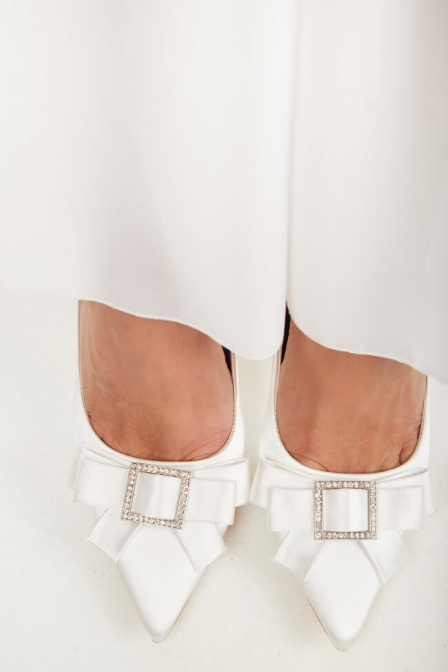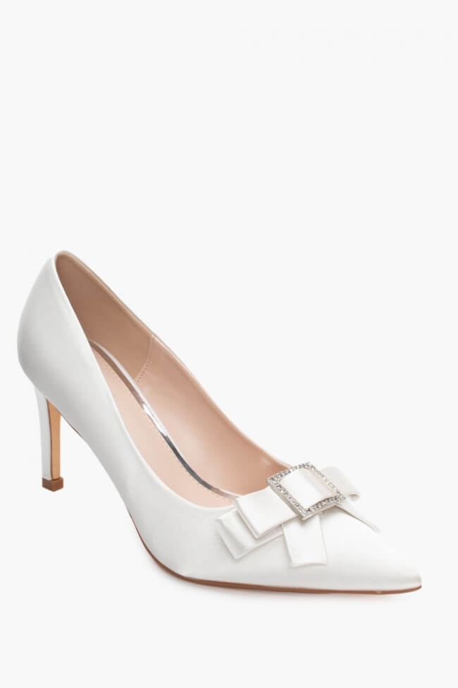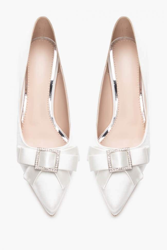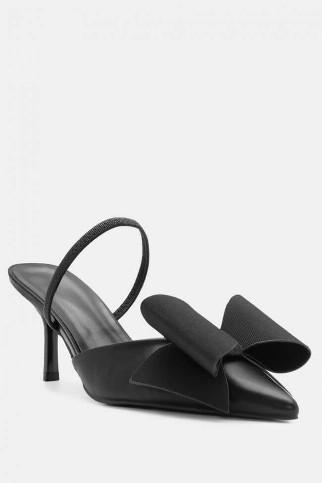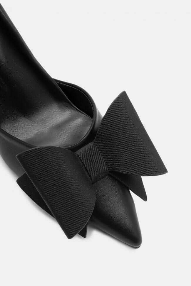 Pointed Toe Pumps with Decorative Bow & Pearls