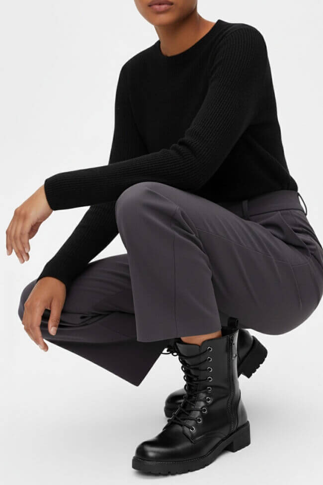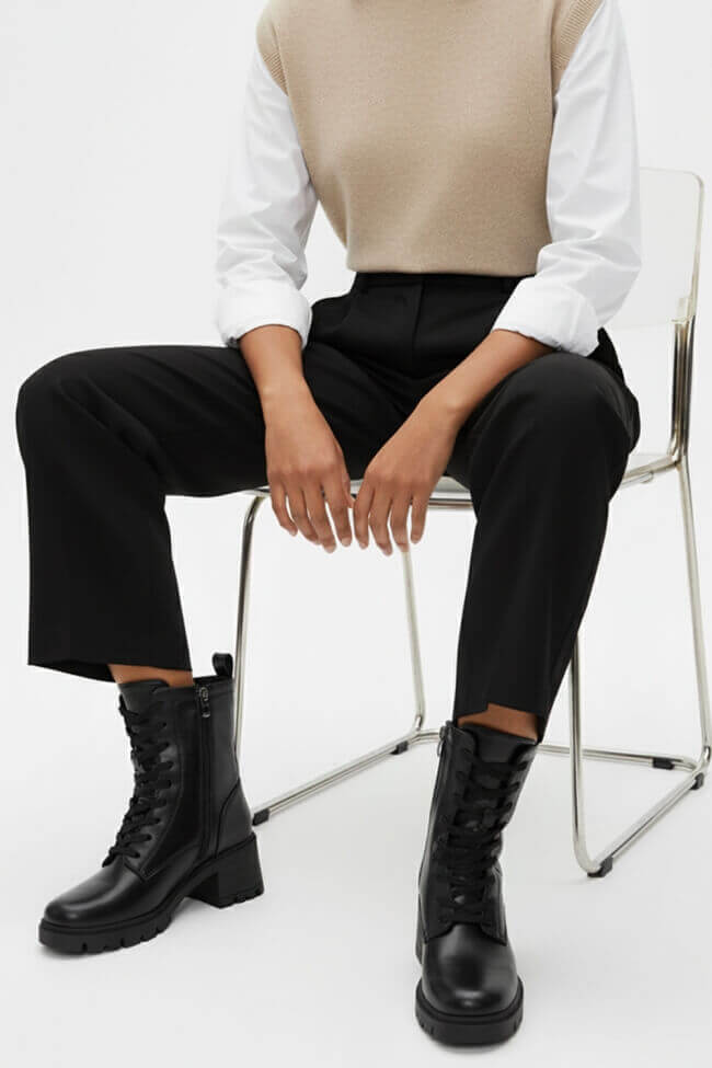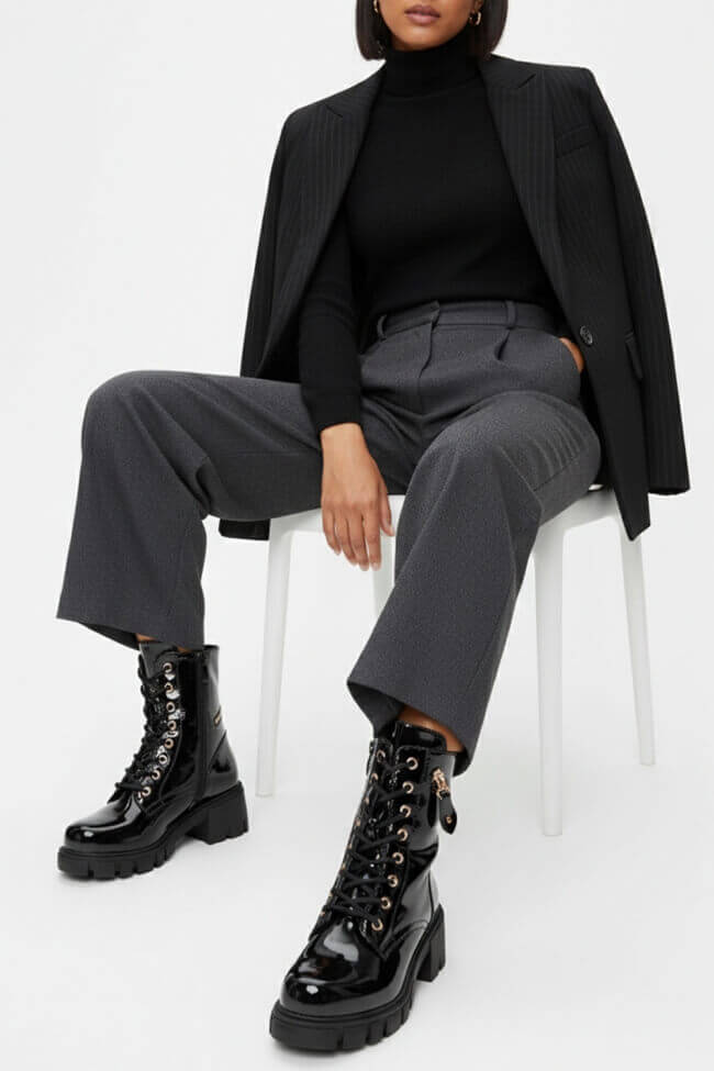 Για πιο formal περιστάσεις, επίλεξε σουέντ ή λουστρίνι χαμηλά μποτάκια. Προσδίδουν κομψότητα και ταιριάζουν ιδανικά με midi φούστες ή tailored παντελόνια.