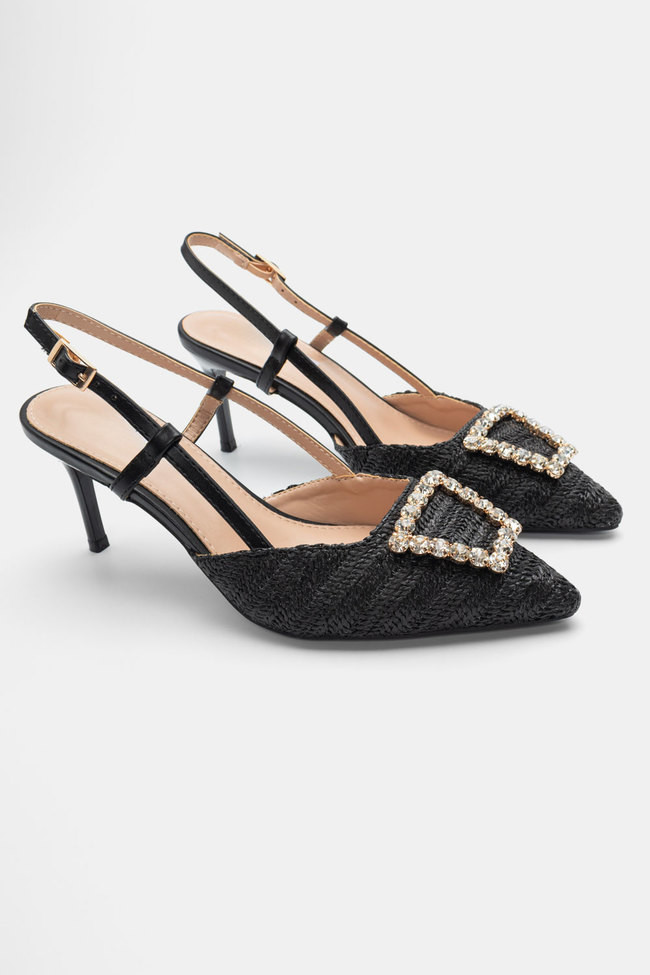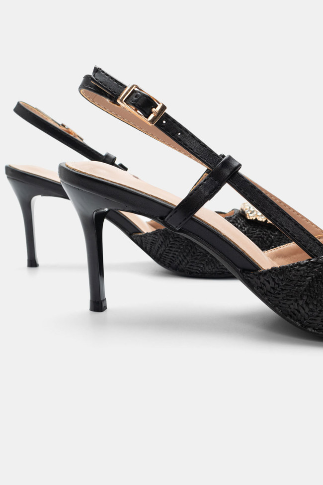 Scarpe con Tacco Aperto a Punta con Cinturino Decorativo