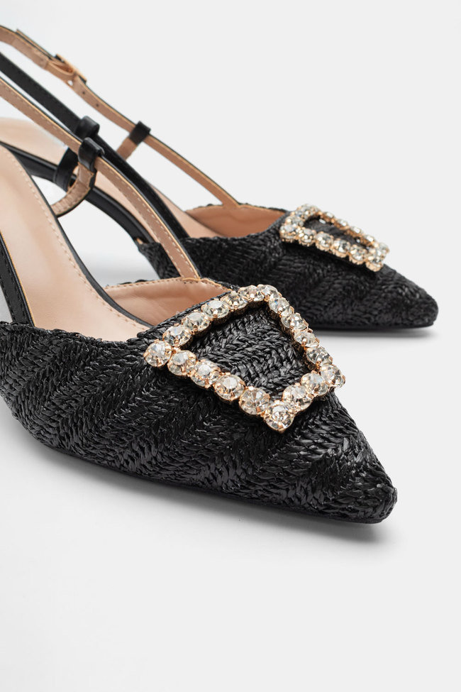 Scarpe a Punta con Zeppa in Paglia & Fibbia con Pietre Decorative